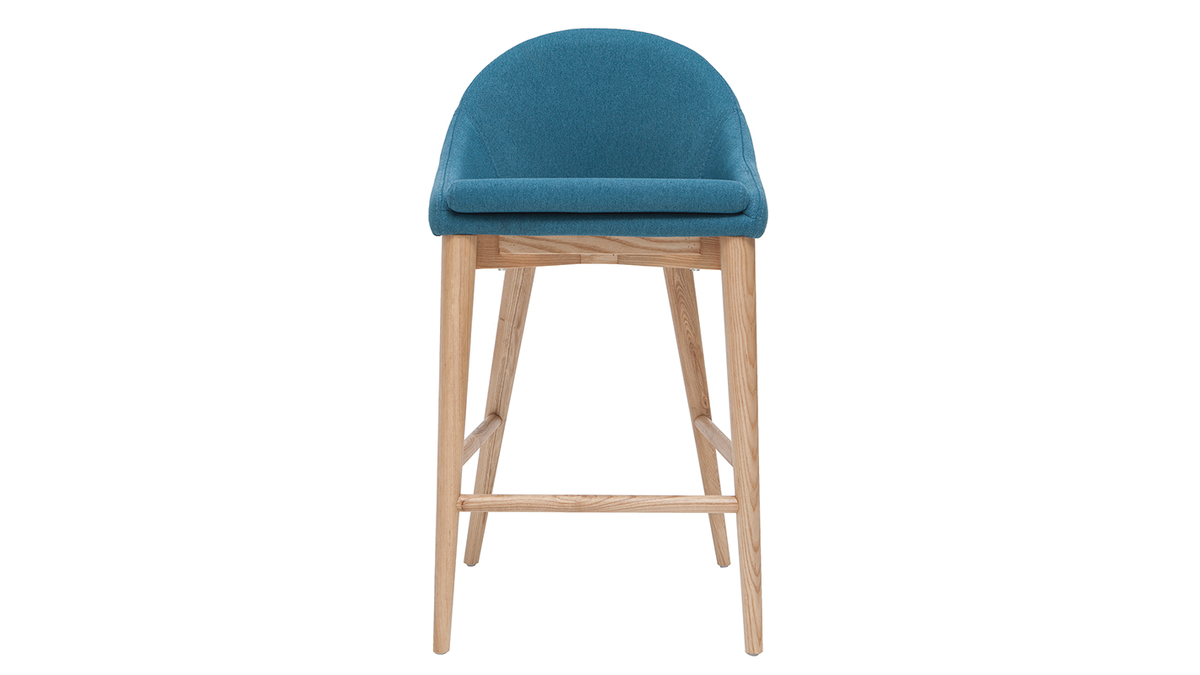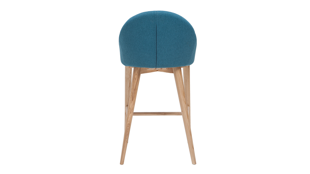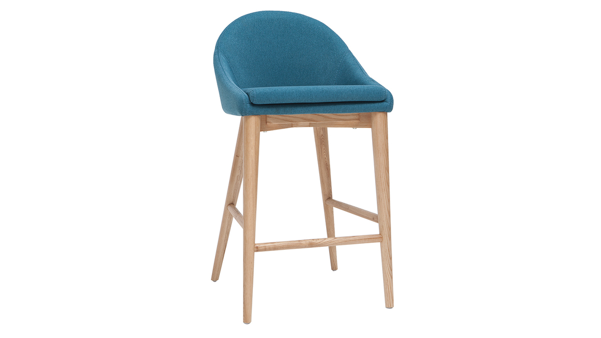 Avec son design tout en courbes, sa forme épurée et sa structure en bois, ce tabouret haut s'intégrera très facilement dans une ambiance scandinave. On aime ce mariage entre un revêtement en polyester bleu canard et un piètement en frêne massif. Les nuances claires de cette essence de bois réchauffent le bleu canard pour un résultat plein de charme.