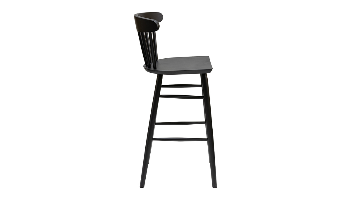 Avec un design inspiré du mobilier scandinave des années 50, DARIA apportera un bel accent rétro au décor. Total look noir mat, dossier composé de fines baguettes et piétement aérien forment un tabouret de bar au cachet remarquable. À la personnalité affirmée, cette assise a tout bon pour donner une note authentique à votre décoration d'intérieur.