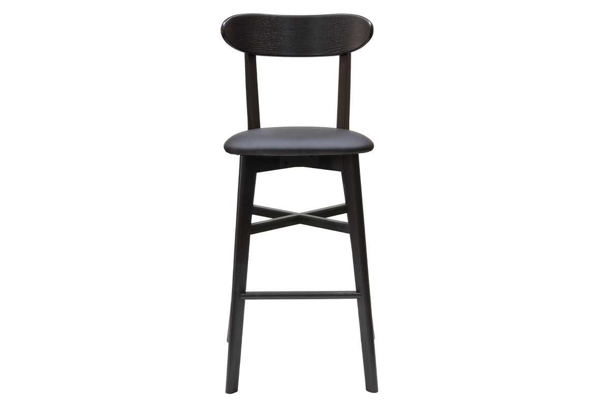 Pieds fuselés, dossier ajouré, silhouette élancée... ce tabouret de bar aux lignes courbées reprend les codes de l'incontournable style vintage avec succès. Avec un solide piétement en chêne massif et un dossier en contreplaqué chêne peints en noir, son assise en polyuréthane noir apporte un joli twist à l'ensemble. Design et matières sont parfaitement coordonnés pour faire de DOVE un tabouret aussi rétro que tendance !
