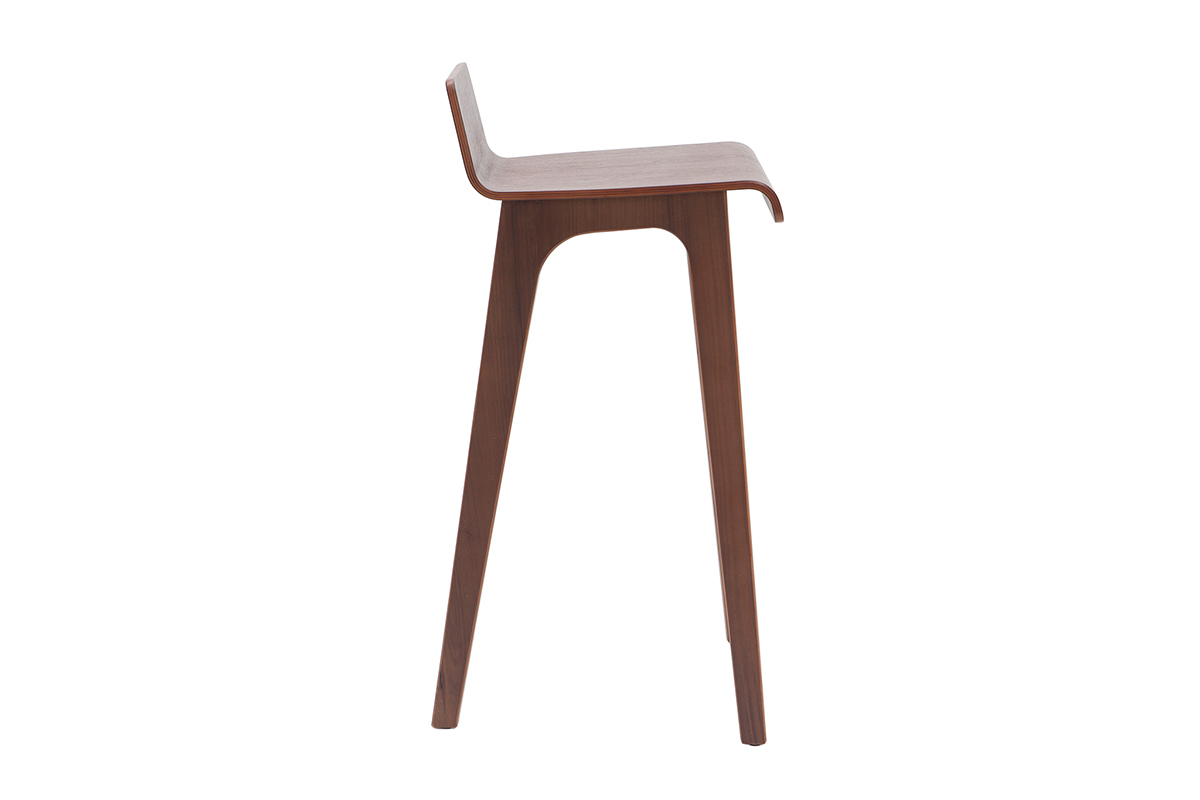 Avec sa forme minimaliste travaillée tout en courbes, ce tabouret haut trouvera facilement sa place autour d'un comptoir de bar ou d'une table haute. Sa finition noyer est idéale pour apporter authenticité et charme à l'espace repas. Le noyer est en effet un bois foncé rappelant le mobilier vintage et permettant de créer une atmosphère chaleureuse.