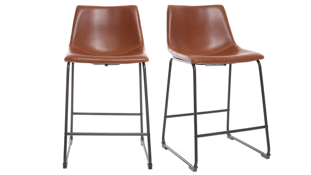 Avec leur assise en polyuréthane marron clair et leur piètement métallique noir, ces tabourets de bar rappellent le charme des assises vintage. Des coutures apparentes du siège en passant par le piètement luge, tout a été pensé pour apporter du style à une cuisine rétro ou d'inspiration industrielle. Les matériaux utilisés pour créer ces tabourets de bar se marieront, en effet, aussi bien dans un séjour dans l'esprit factory que dans un intérieur 70's. Grâce à son rendu unique, le polyuréthane est idéal pour ajouter une touche chic à la décoration de la pièce.