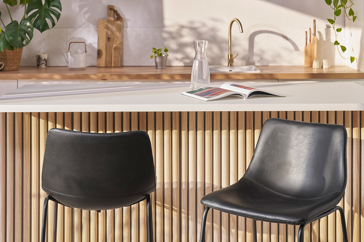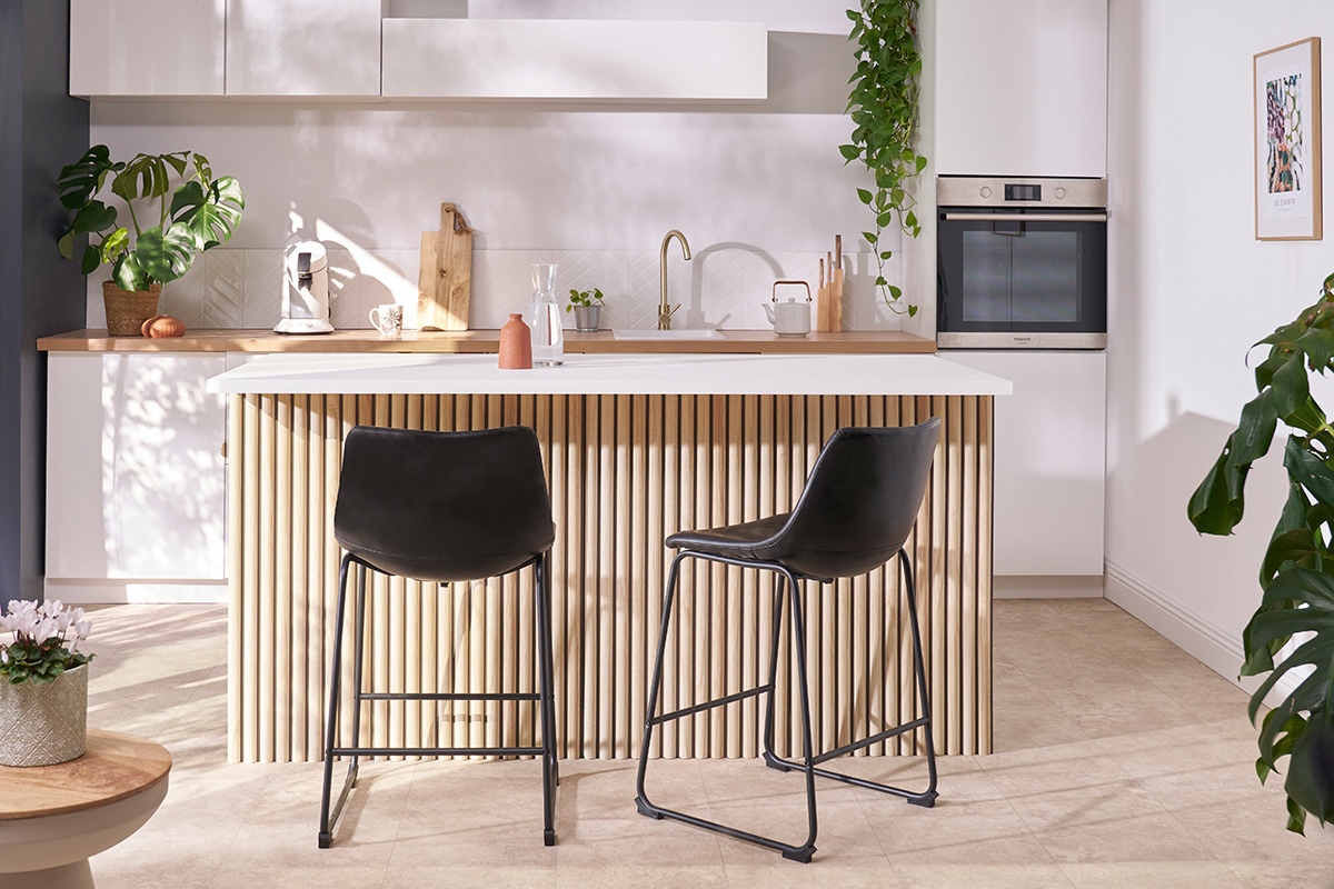 Grâce à leur dossier et leur repose-pieds intégré, ces chaises hautes sont confortables et leur hauteur de 61 cm les rend parfaitement adaptées à un comptoir ou un îlot de 90 cm de haut. Si vous souhaitez disposer ces tabourets autour d'un espace repas plus haut, les tabourets de bar industriels NEW ROCK sont disponibles en version 73 cm.