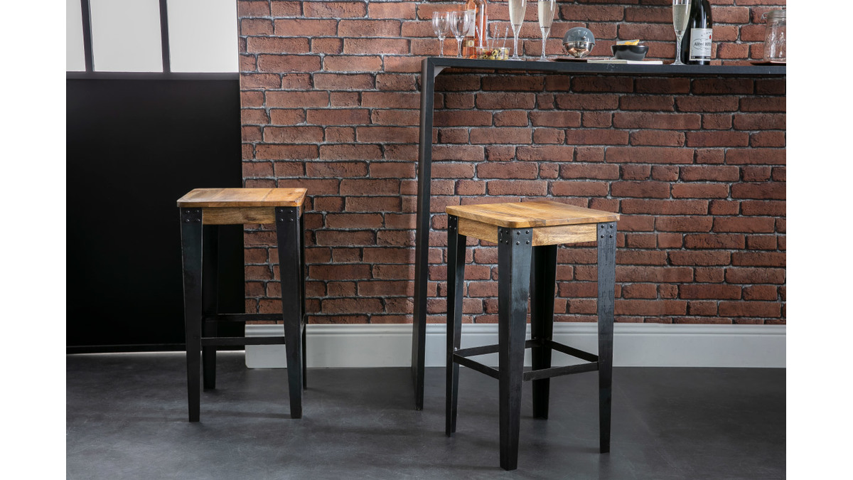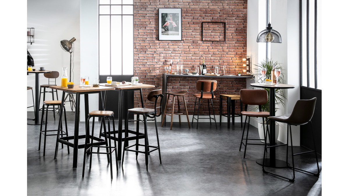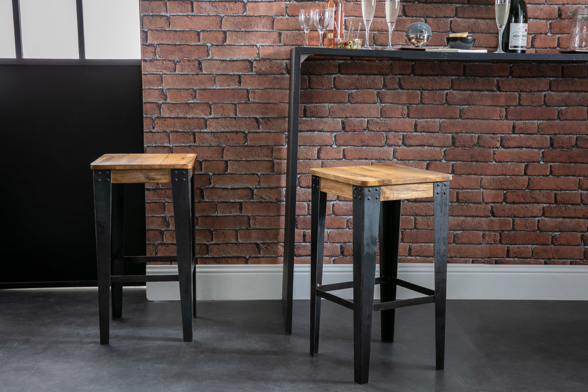 Pour un look 100% industriel, dépareillez vos tabourets de bar MADISON avec les tabourets d'appoint INDUSTRIA.