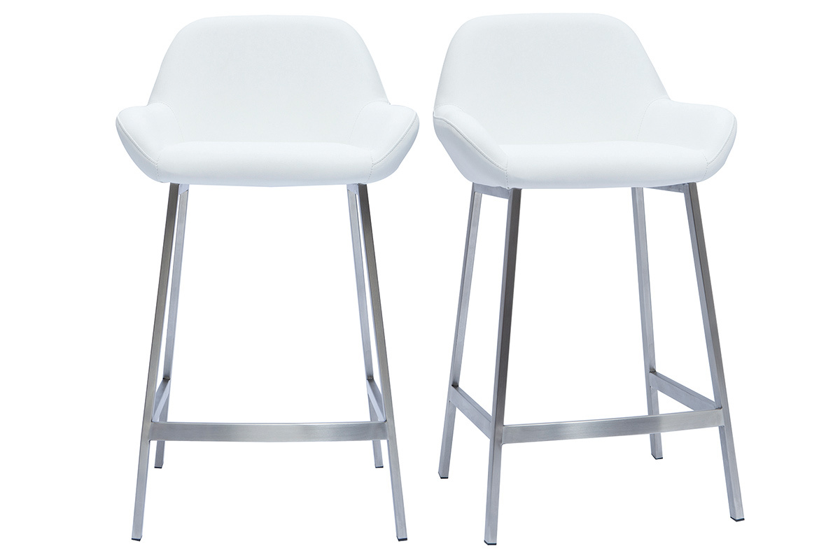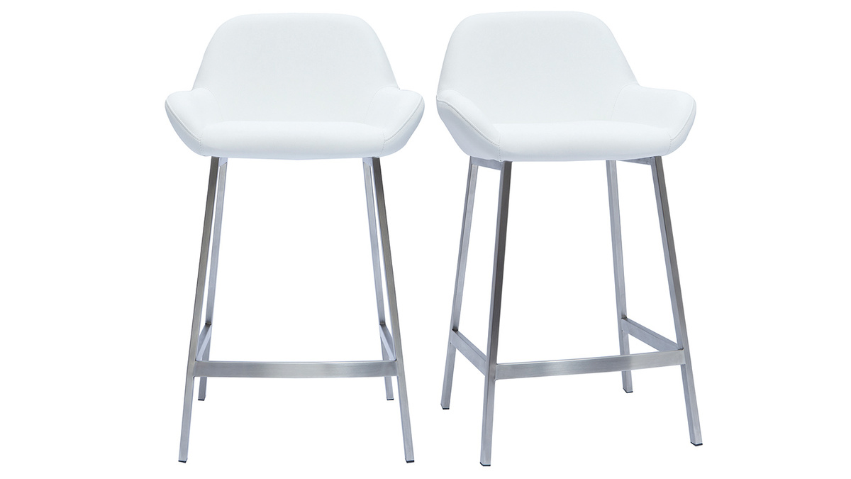Ces tabourets de bar design s'intègrent facilement dans tous styles d'intérieur. Leur ligne sobre et élégante dessine une jolie silhouette contemporaine. Le mariage entre une assise en polyuréthane et un piètement en acier brossé donne à l'ensemble une allure moderne. Ces chaises hautes discrètes et confortables complèteront une table haute dans le séjour ou un îlot central dans la cuisine. Avec leurs 66 cm de hauteur d'assise, elles sont adaptées à des comptoirs d'environ 90 cm de haut.