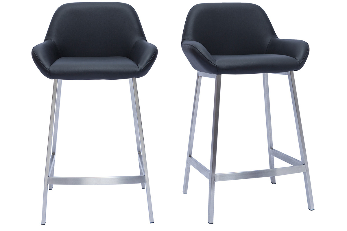 Ces tabourets de bar design s'intègrent facilement dans tous styles d'intérieur. Leur ligne sobre et élégante dessine une jolie silhouette contemporaine. Le mariage entre une assise en polyuréthane et un piètement en acier brossé donne à l'ensemble une allure moderne. Ces chaises hautes discrètes et confortables complèteront une table haute dans le séjour ou un îlot central dans la cuisine. Avec leurs 66 cm de hauteur d'assise, elles sont adaptées à des comptoirs d'environ 90 cm de haut.