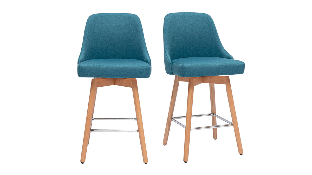 Ces tabourets de bar scandinaves sont équipés d'une assise rembourrée pivotante à 360° pour toujours plus de confort. Avec leurs 65 cm de hauteur d'assise, ils se disposent autour d'un îlot central, une table bar ou un comptoir d'environ 90 cm de haut. Parce qu'ils réunissent confort et style, ils complèteront à merveille un îlot de cuisine scandinave ou un comptoir contemporain.