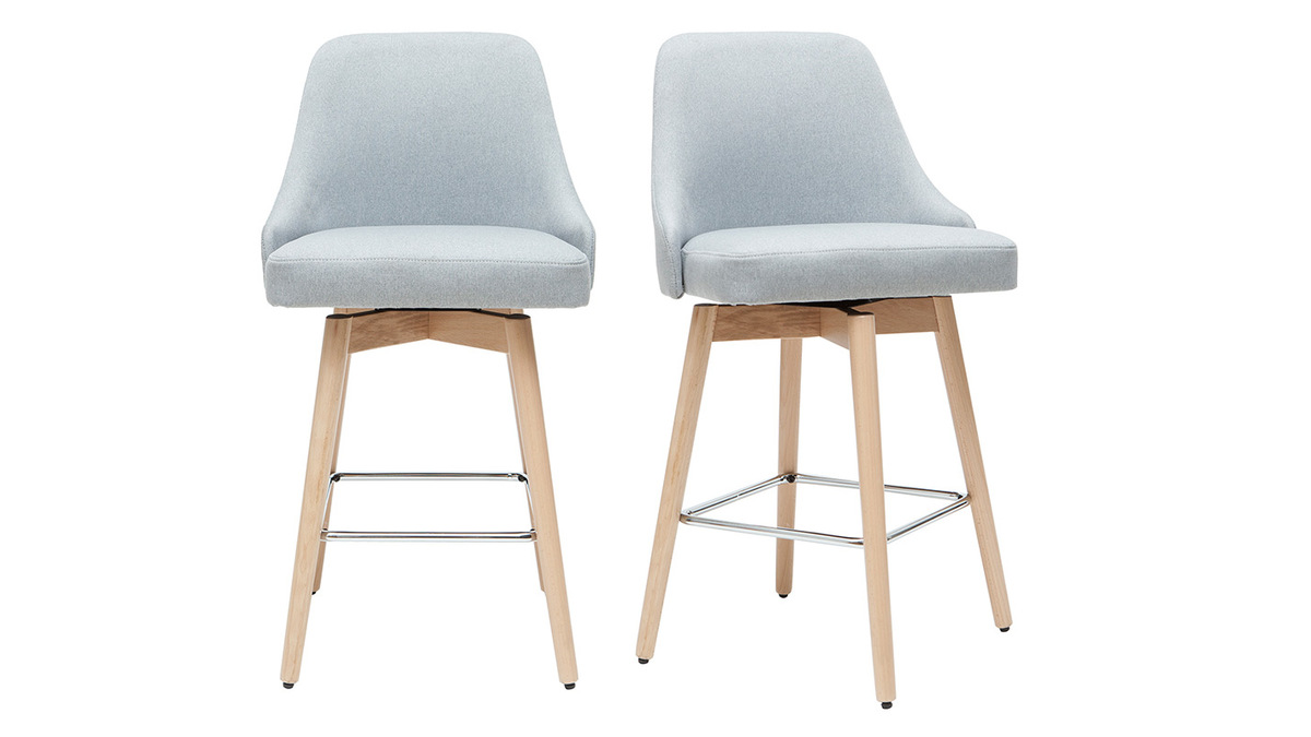 Ces tabourets de bar scandinaves sont équipés d'une assise rembourrée pivotante à 360° pour toujours plus de confort. Avec leurs 65 cm d'hauteur d'assise, ils se disposent autour d'un îlot central, une table bar ou un comptoir d'environ 90 cm de haut. Parce qu'ils réunissent confort et style, ils complèteront à merveille un îlot de cuisine scandinave ou un comptoir contemporain.