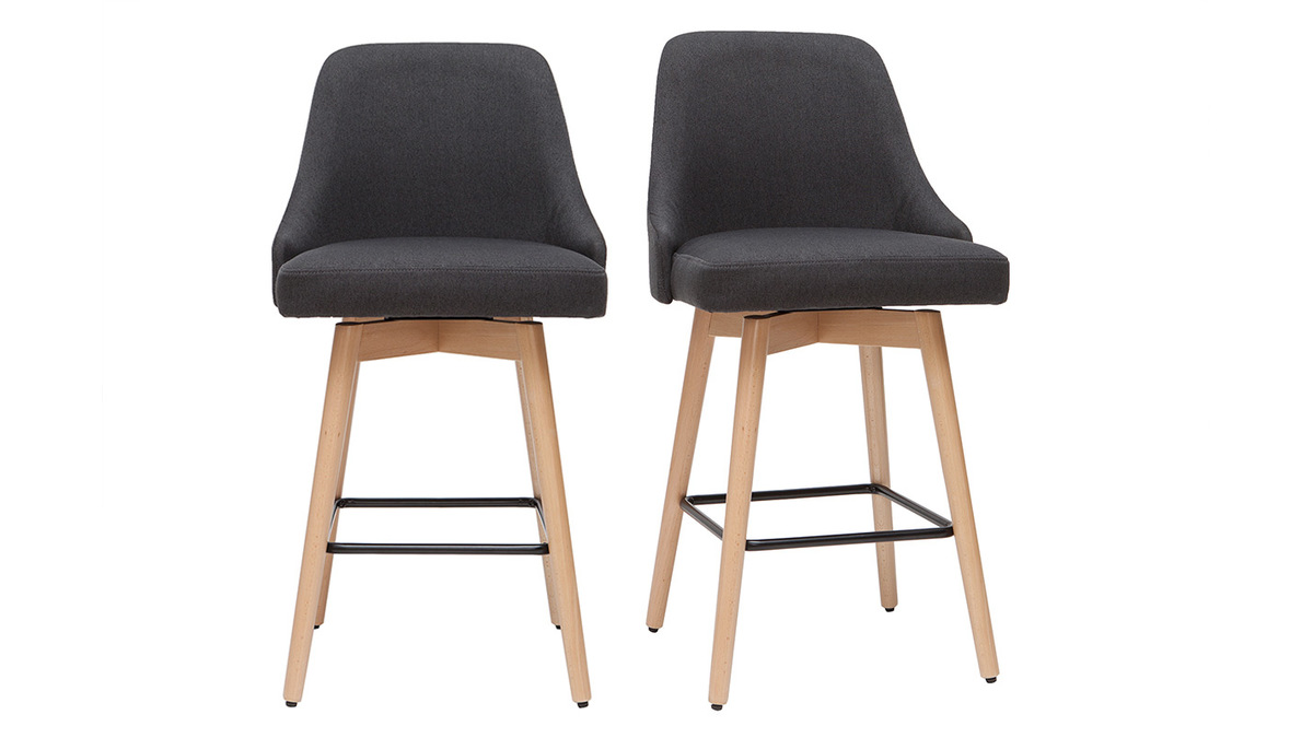 Ces tabourets de bar scandinaves sont équipés d'une assise rembourrée pivotante à 360° pour toujours plus de confort. Avec leurs 65 cm d'hauteur d'assise, ils se disposent autour d'un îlot central, une table bar ou un comptoir d'environ 90 cm de haut. Parce qu'ils réunissent confort et style, ils complèteront à merveille un îlot de cuisine scandinave ou un comptoir contemporain.