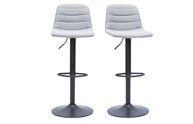 Le revêtement en polyester gris clair pour l'assise et le métal noir mat pour le piètement apportent une touche contemporaine et épurée dans un séjour qui se veut tendance. Vendus par lot de 2, les tabourets de bar SAURY ont l'avantage de pouvoir se régler pour une hauteur d'assise de 61 à 83 cm. Pour plus de confort, l'assise pivote à 360°.
