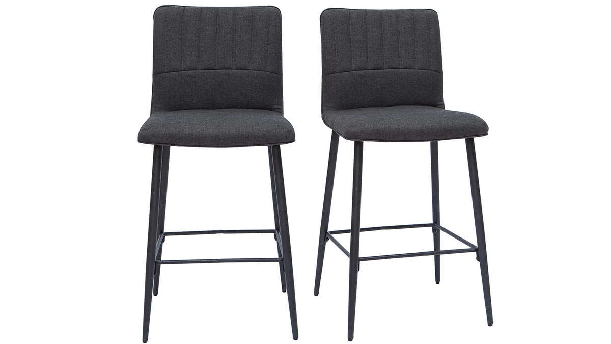 FARELL sont des chaises de bar qui mêlent influences vintage et contemporaine. Leur dossier travaillé avec un effet matelassé rappelle le design des assises rétro tout en offrant un maintien idéal. Egalement équipés d'une assise rembourrée en tissu, ces tabourets hauts sont ultra confortables. Leur revêtement au toucher unique apporte une touche de modernité et est harmonieusement complété par un piètement en métal noir élancé. Duo de chic, métal et tissu sont parfaits pour un espace repas à la déco moderne élégante.