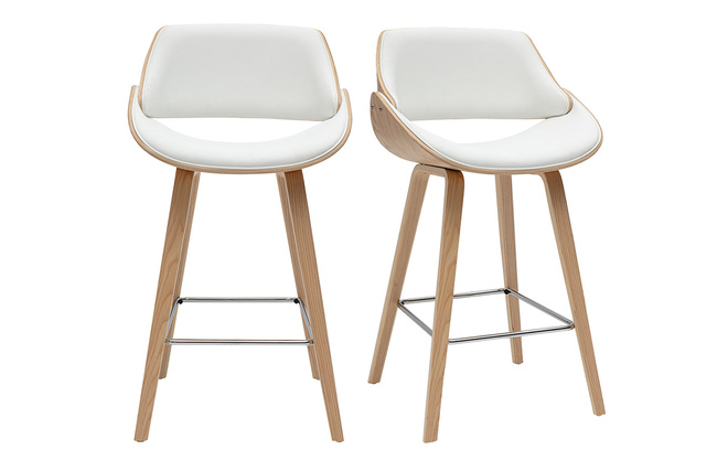 Cette paire de tabourets design combine à la perfection fonctionnalité et style, apportant une touche contemporaine inégalable à votre espace de vie. Le mariage harmonieux entre le blanc mat et le bois clair insuffle une atmosphère à la fois chaleureuse et sophistiquée, idéale pour les intérieurs modernes ou scandinaves.