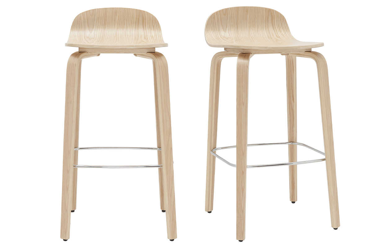 Savourez le plaisir de moments conviviaux confortablement installé ! À la fois aériens et robustes, ces tabourets de bar scandinaves assurent un accueil très apprécié ! Incurvée, la coque plaquée chêne est composée d'une large assise et d'un dossier bas. Pour permettre à chacun d'adopter la bonne posture - même en hauteur ! - le repose-pied en métal chromé, se fond avec discrétion dans le jeu graphique des quatre solides pieds contreplaqués chêne.