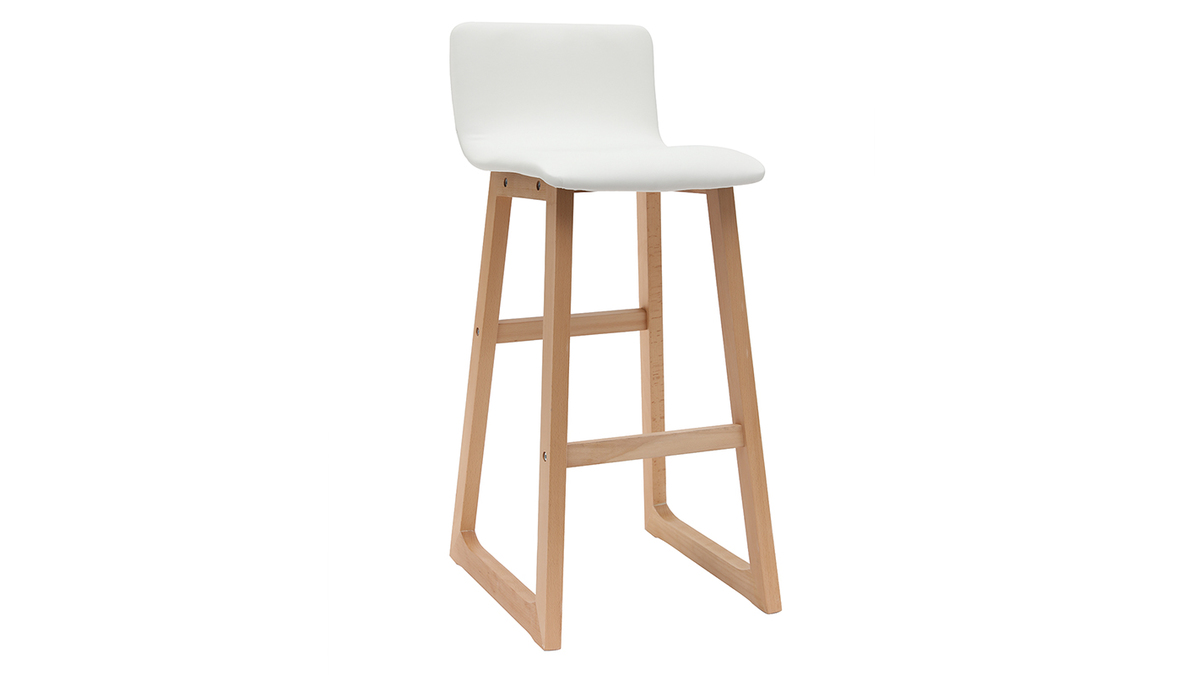 Ces tabourets de bar bois clair et PU blanc 72cm OSAKA sont résolument design et dans l'air du temps.