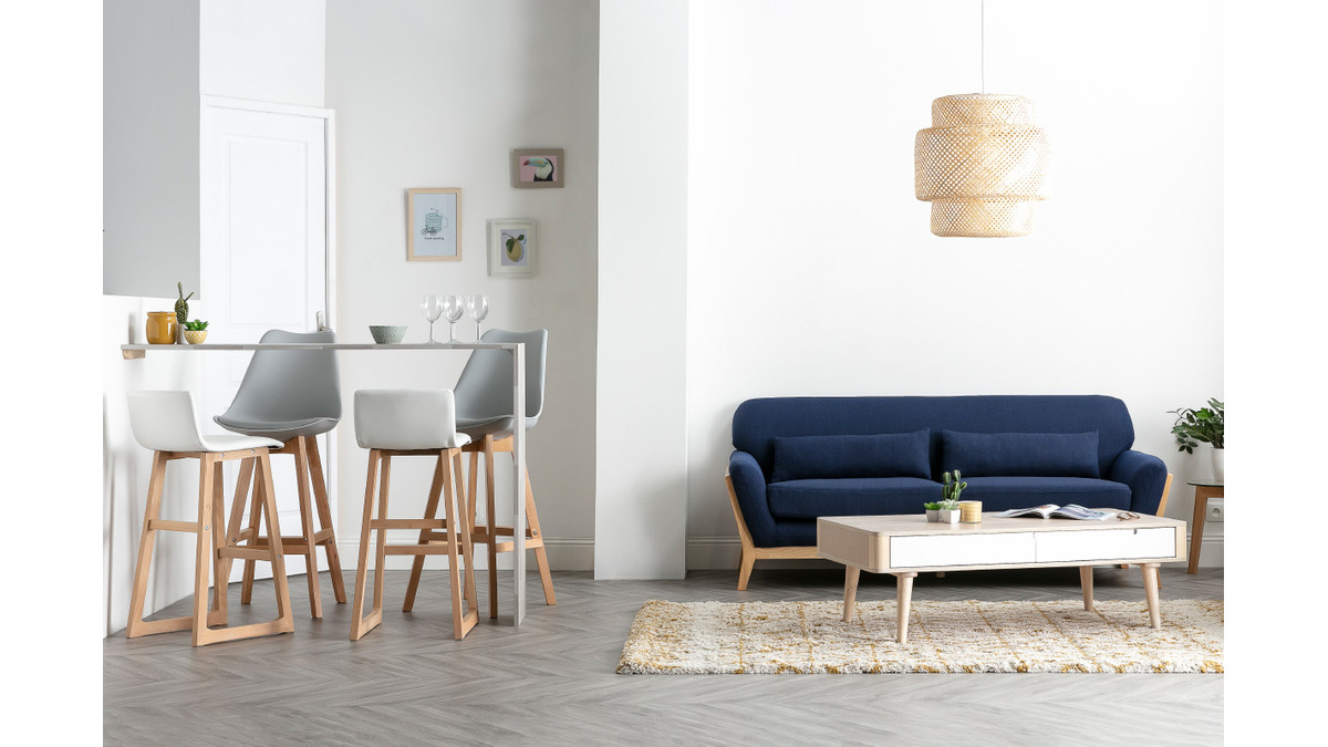 Les cuisines aussi ont droit au design avec les tabourets de bar bois clair et PU blanc 72cm OSAKA !
