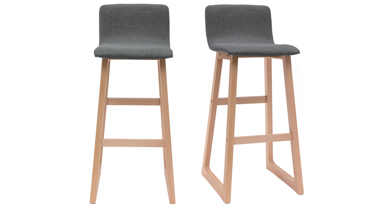 Les tabourets de bar bois clair et tissu gris 72cm OSAKA ont un repose pied pour une praticité maximum, et ont une hauteur d'assise de 72cm, ce qui sera parfait pour une table de 100 à 110 cm de hauteur.