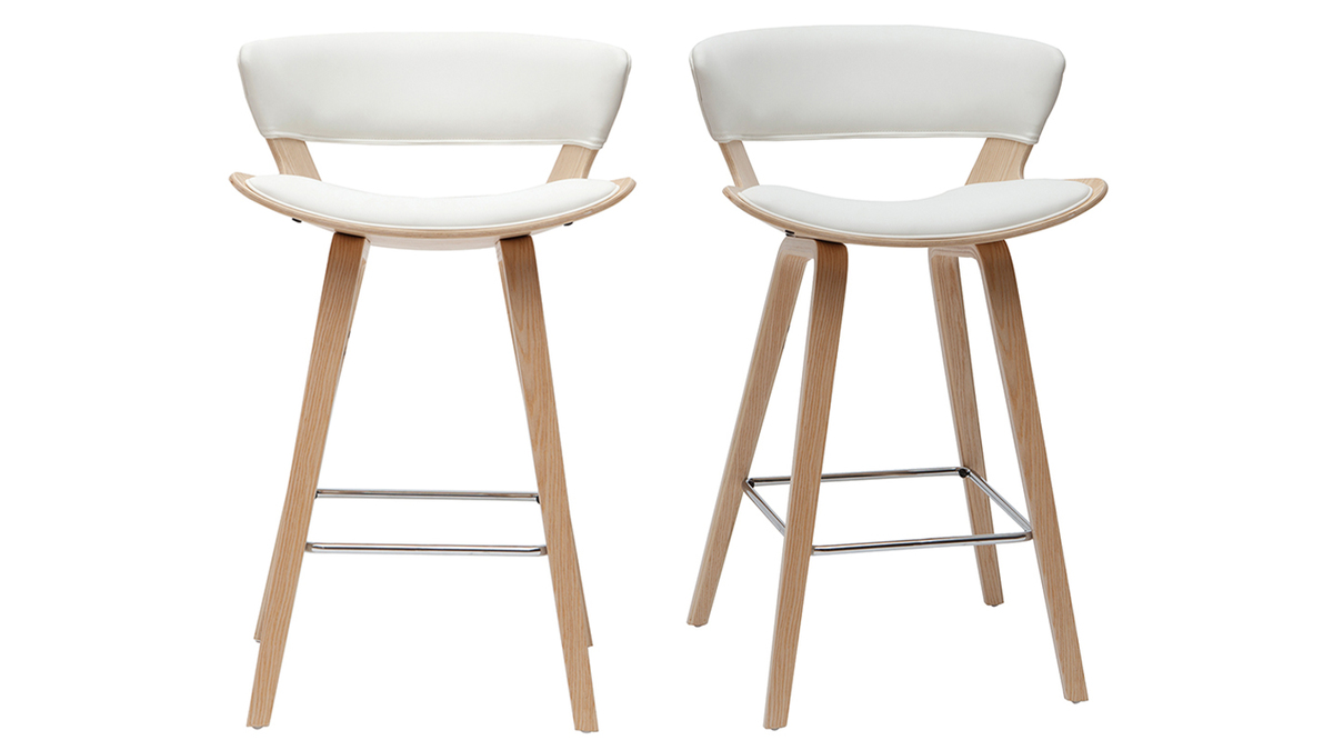 Entre revêtement en polyuréthane blanc, structure en bois clair et repose-pieds en métal chromé, ce modèle de tabouret de bar design blanc et bois se veut résolument esthétique ! Textures et courbes, font des SYRAH des assises déco, totalement dans l'air du temps. On les imagine autant associées à une table de bar à l'esprit nordique qu'à un îlot de cuisine moderne !