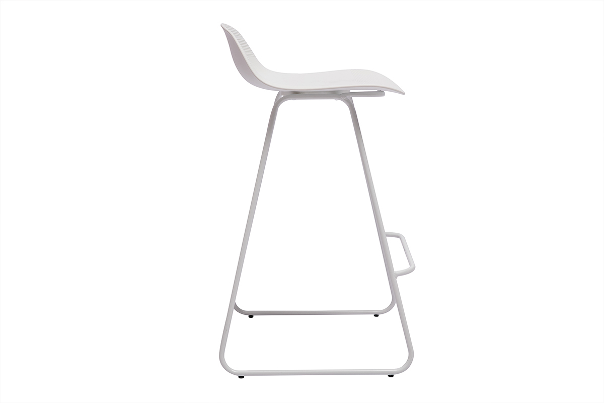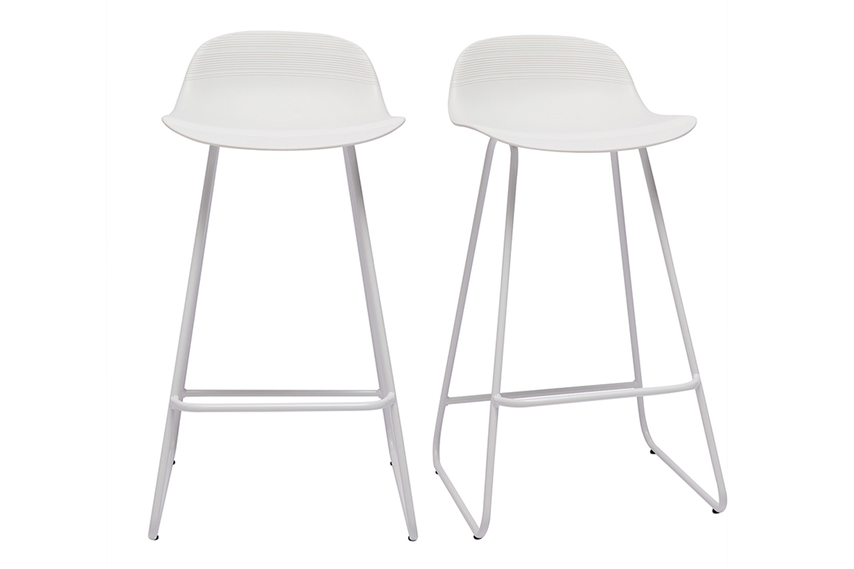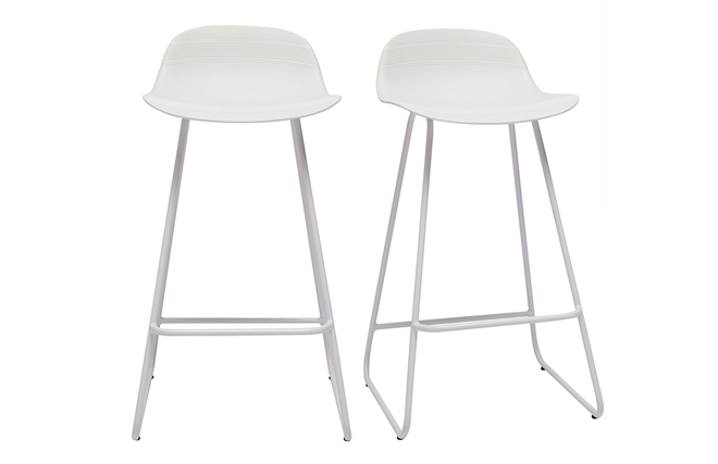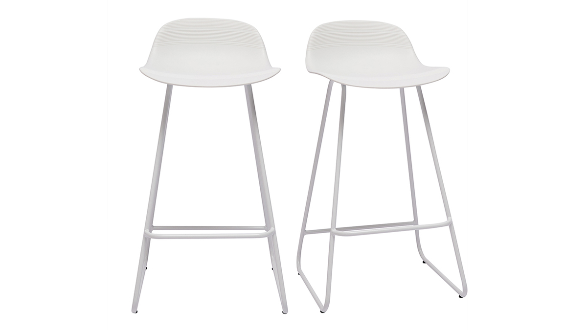 Tabourets de bar design blancs H65 cm (lot de 2) ELLA vendus par lot de 2. Livrés prêts à assembler.