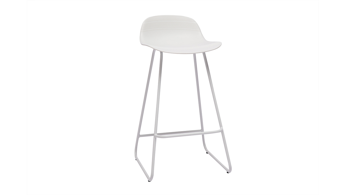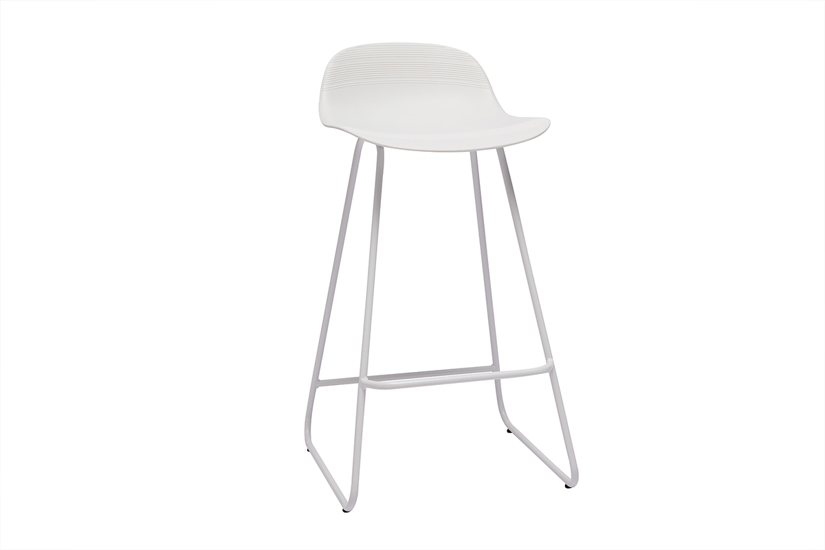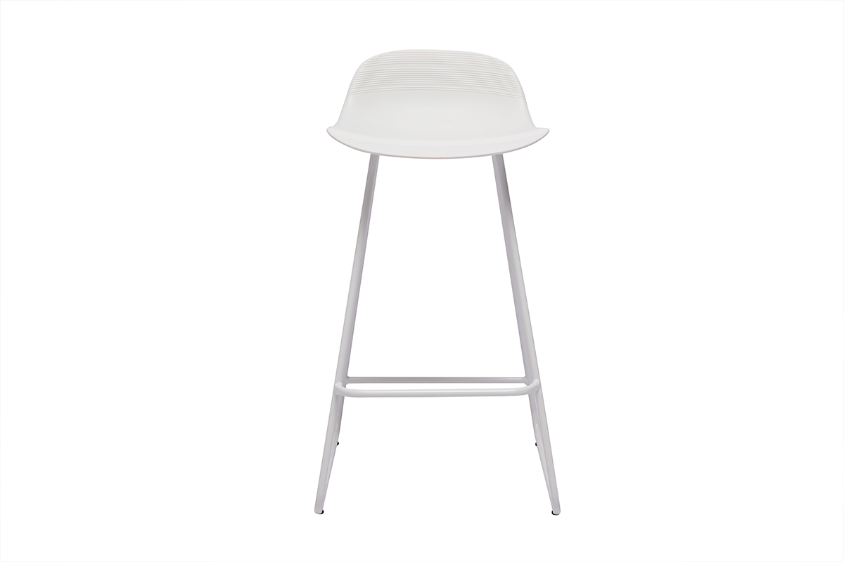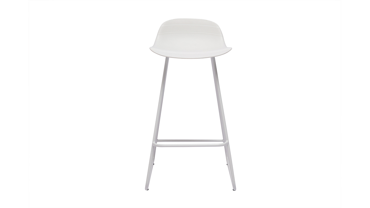 Tabourets de bar design blancs H65 cm (lot de 2) ELLA vendus par lot de 2. Livrés prêts à assembler.