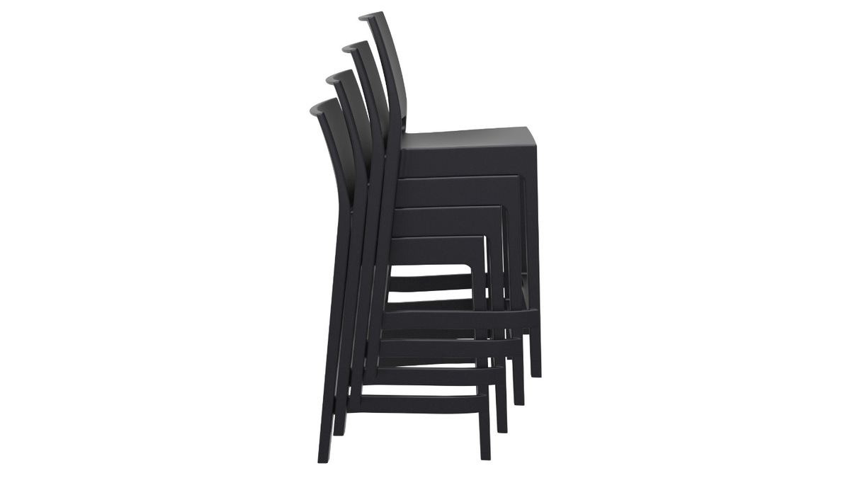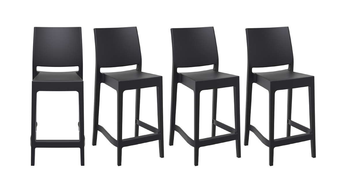 Avec leur style sobre et moderne, il s'intègreront parfaitement à une décoration contemporaine en accompagnant une table haute design. Leur coloris noir est discret et élégant, vous permettant de vous créer un coin repas tendance et stylé. Leur assise est haute de 65 cm, les rendant adaptés pour des supports hauts d'environ 90 cm. Munis d'un dossier légèrement incurvé et d'un repose-pied, ils assurent un vrai confort pour vos déjeuners et autres apéritifs en extérieur.