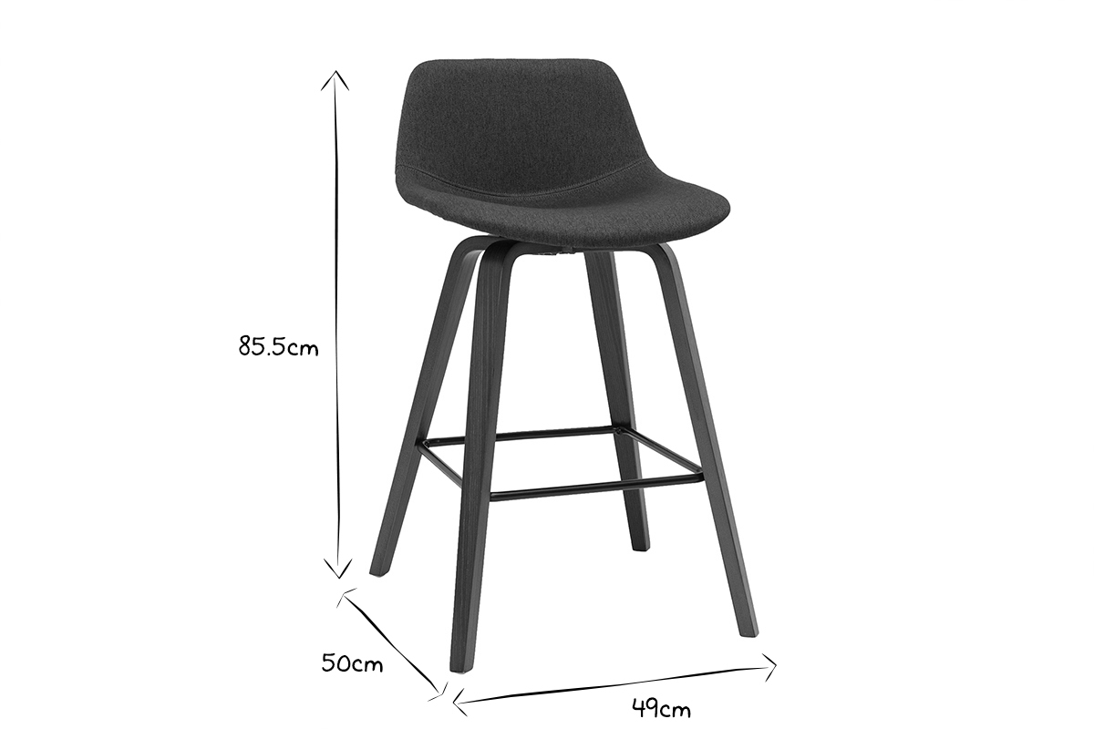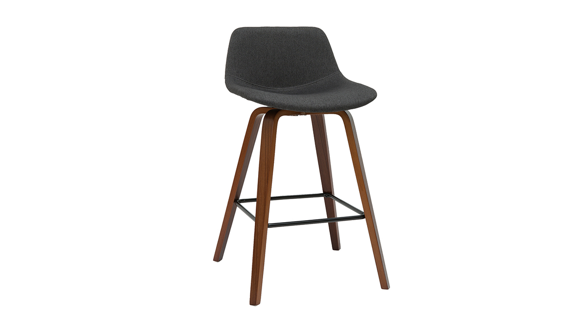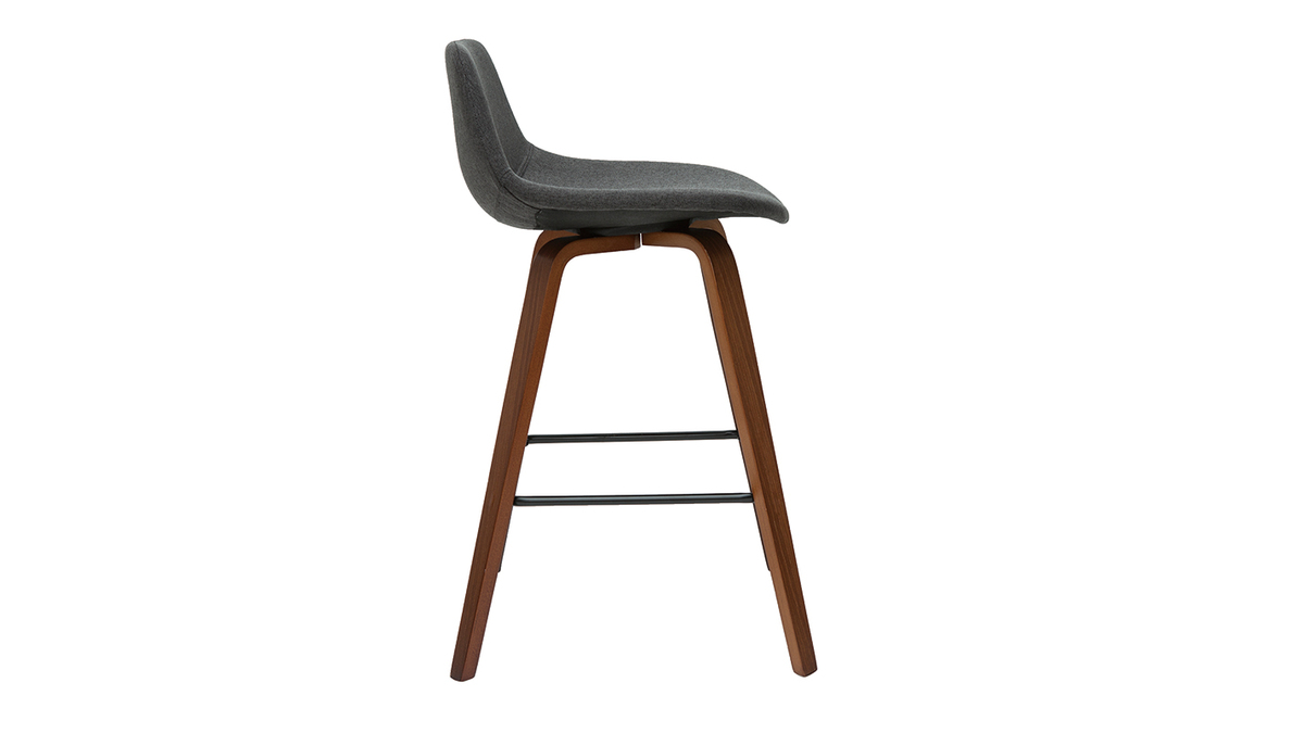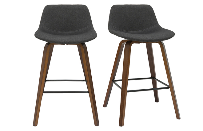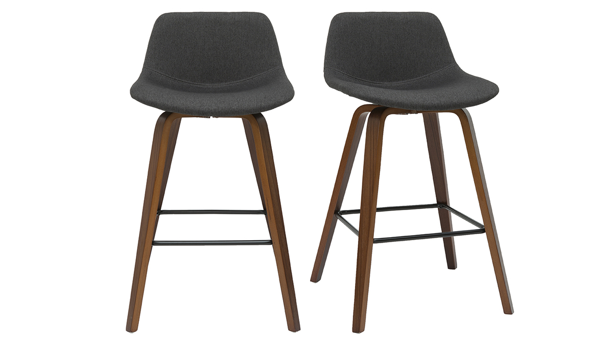 Tabourets de bar design gris foncé et bois foncé noyer H65 cm NONIE vendus par lot de 2. Livrés prêts à monter.