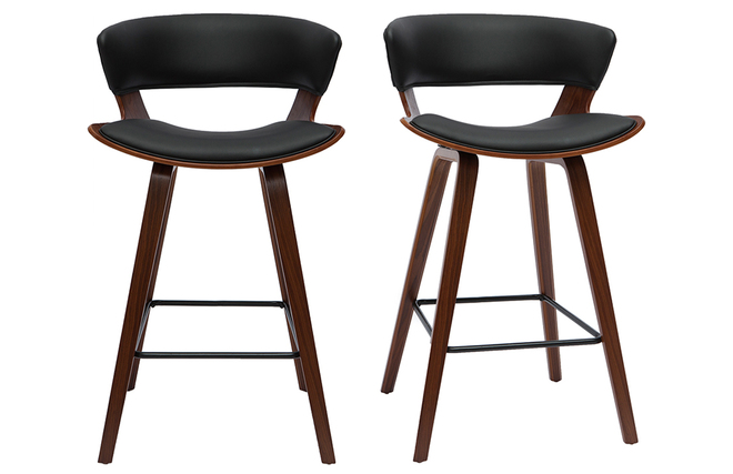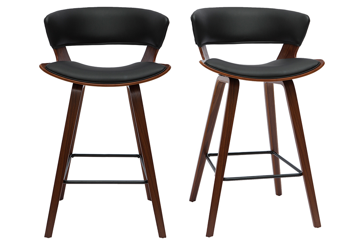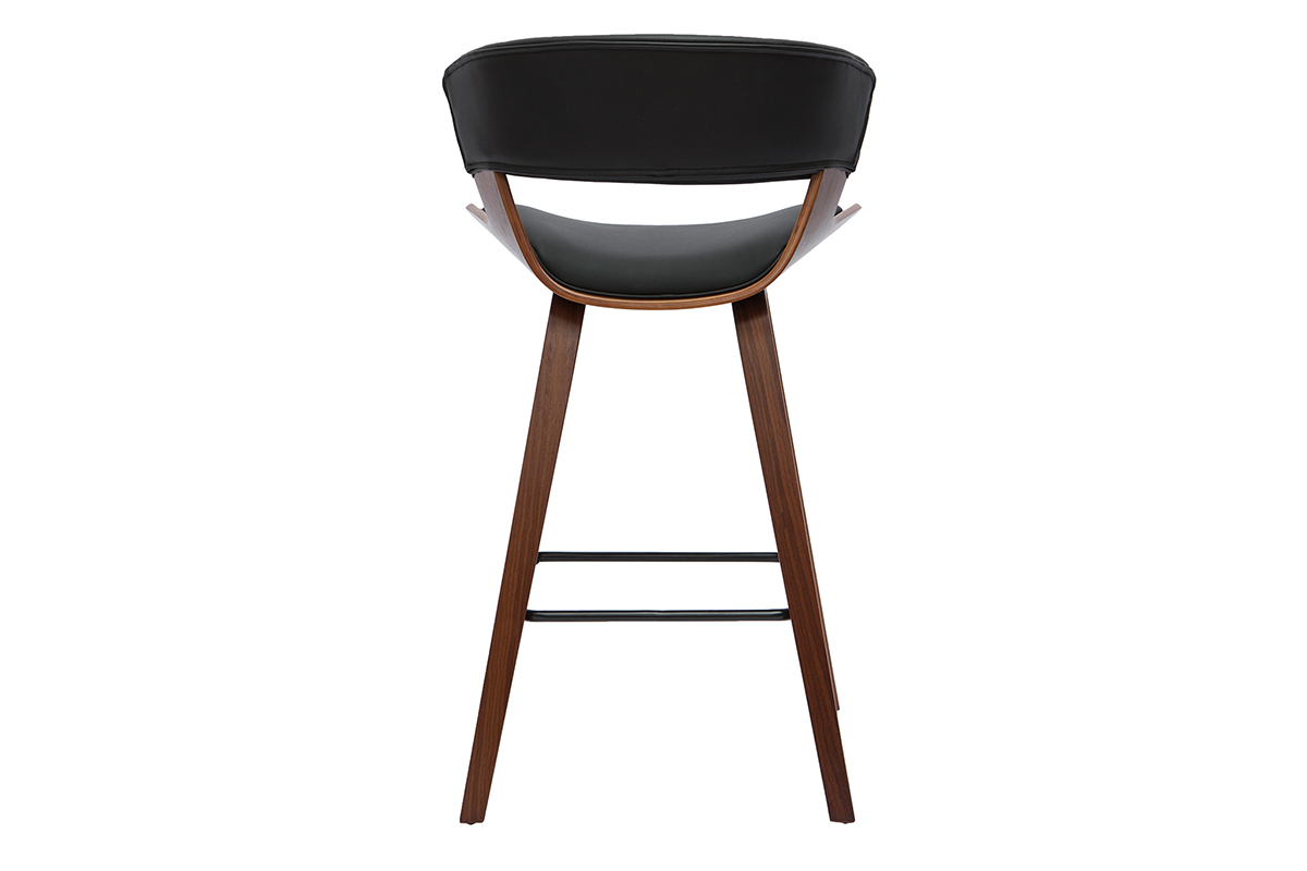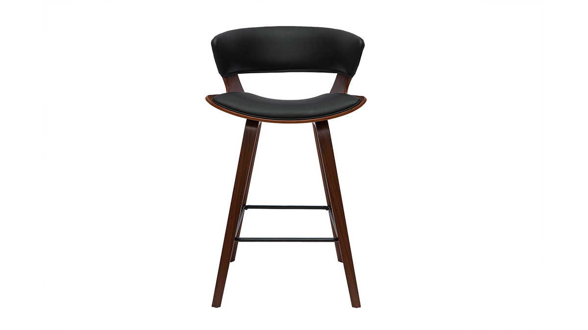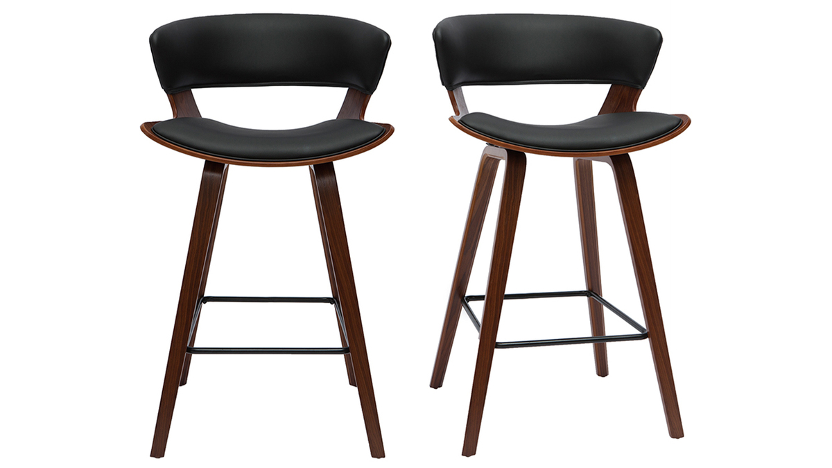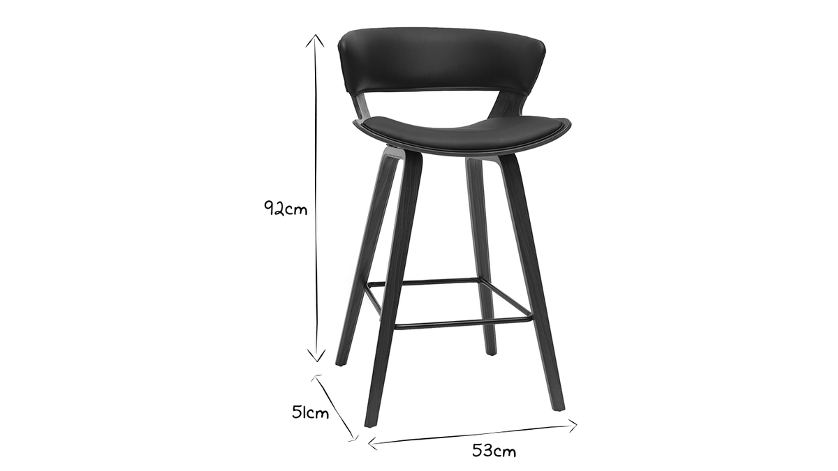 Entre revêtement en polyuréthane noir, structure en bois foncé et repose-pieds en métal noir, ce modèle de tabouret de bar design noir et bois foncé se veut résolument esthétique ! Textures et courbes, font des SYRAH des assises déco, totalement dans l'air du temps. On les imagine autant associées à une table de bar à l'esprit vintage qu'à un îlot de cuisine moderne !