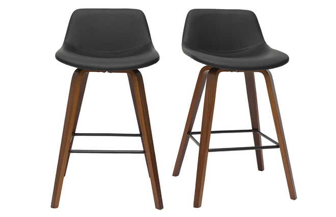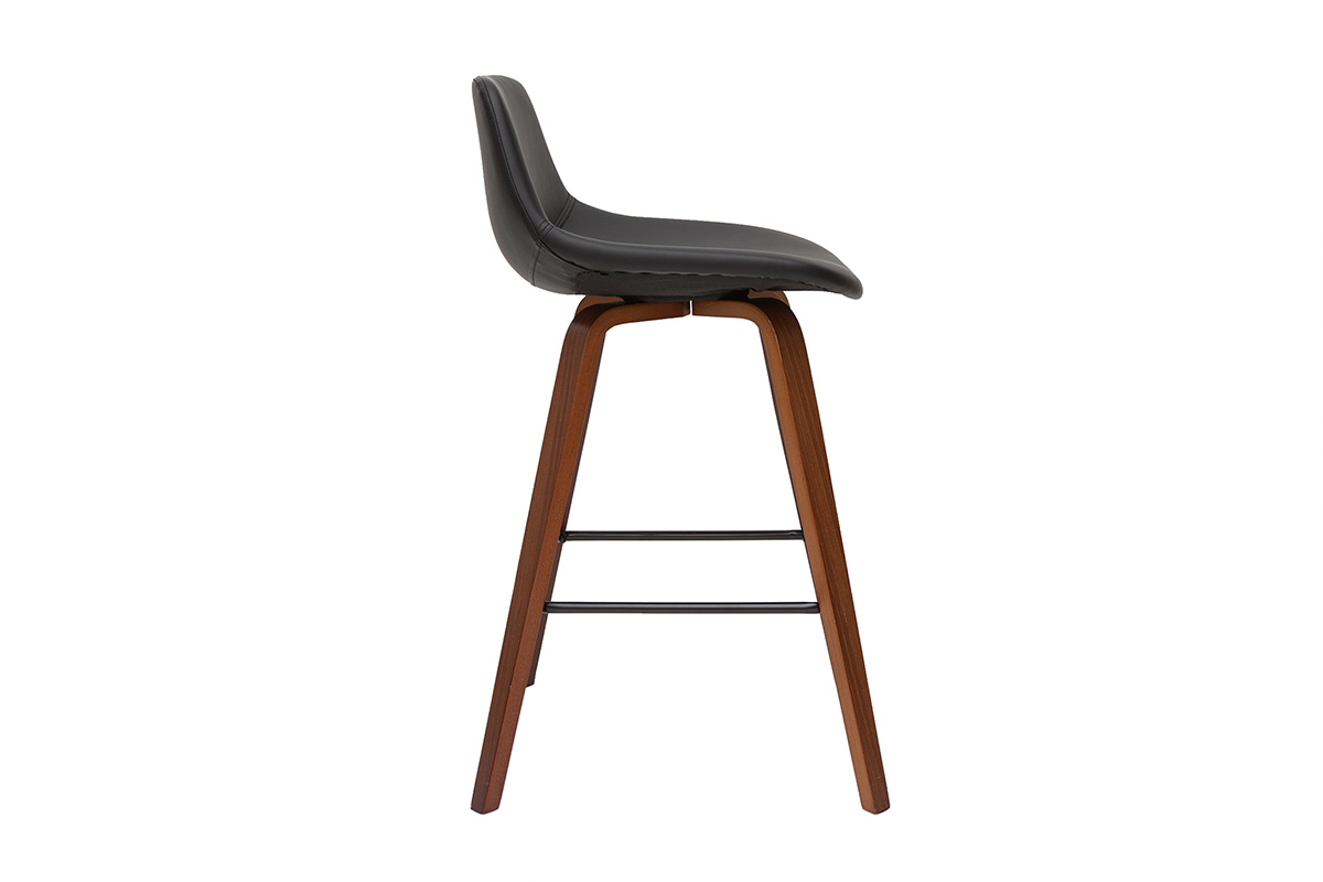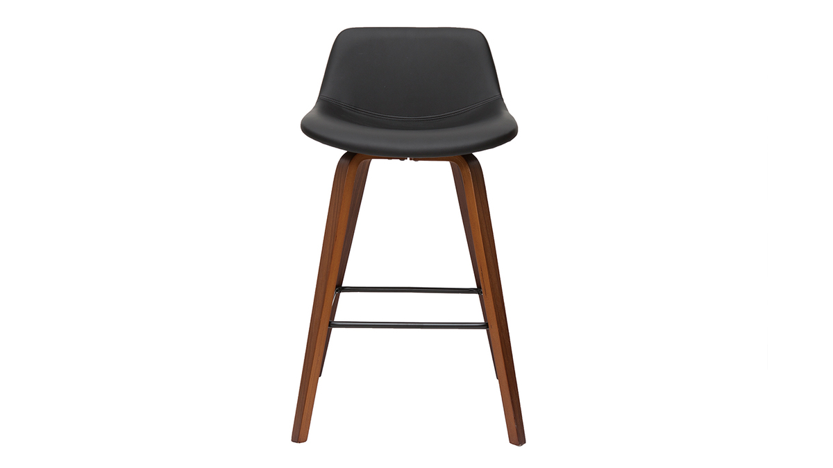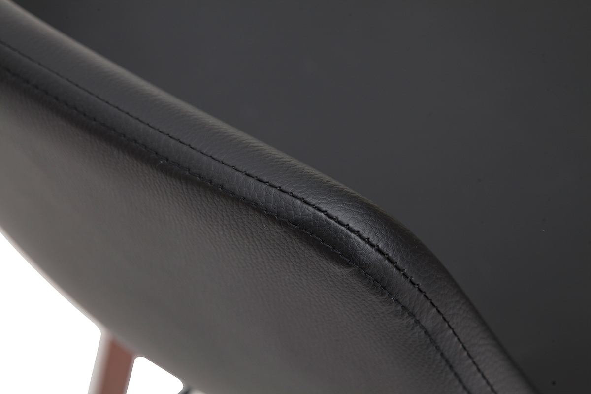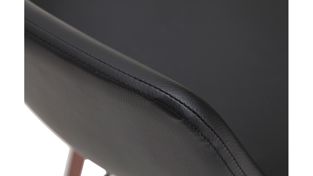 L'assise et le dossier haut de 24 centimètres sont rembourrés (densité de la mousse 24 kg/m3) et recouverts d'un joli revêtement en polyuréthane noir. Les jolis pieds inclinés en contreplaqué finiton noyer et le repose-pieds de hauteur standard participent également au confort.