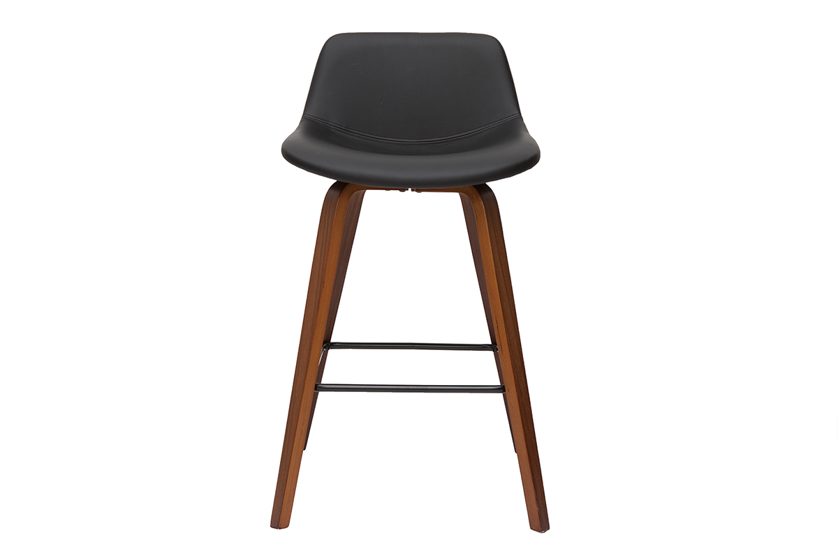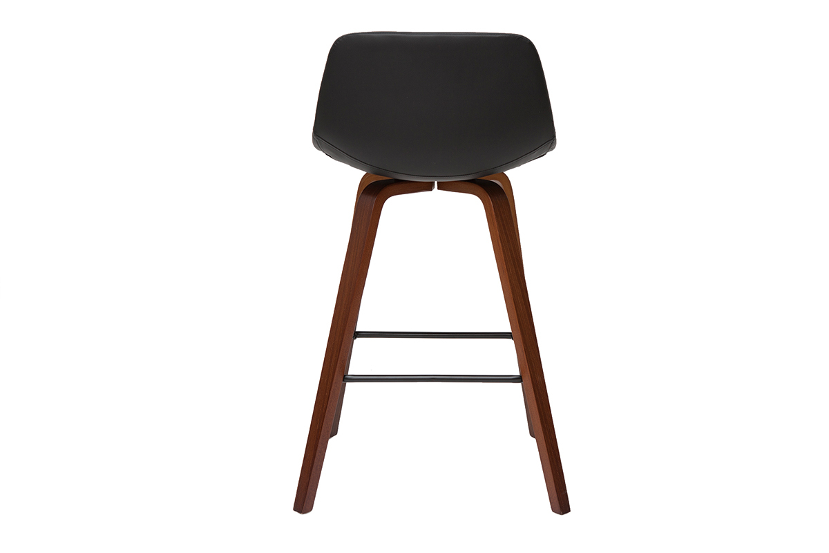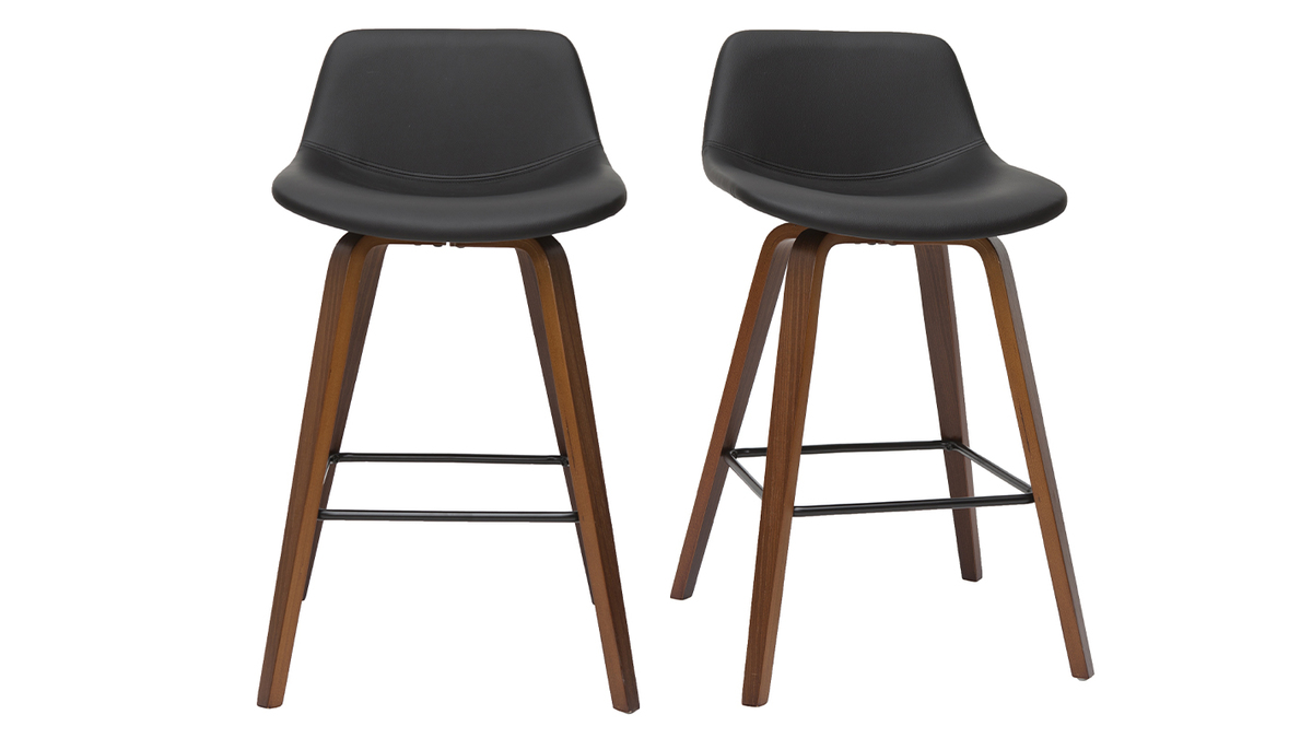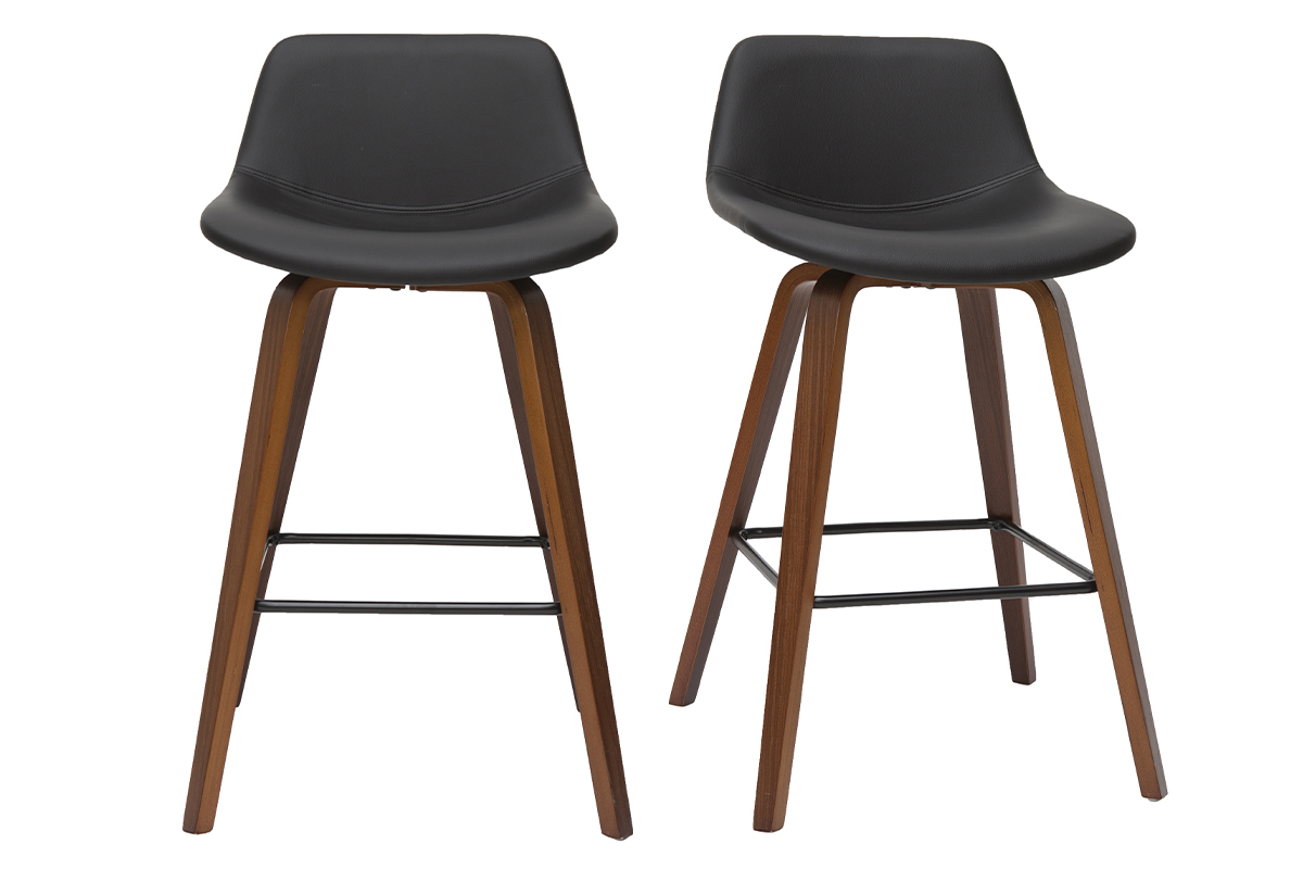 L'assise et le dossier haut de 24 centimètres sont rembourrés (densité de la mousse 24 kg/m3) et recouverts d'un joli revêtement en polyuréthane noir. Les jolis pieds inclinés en contreplaqué finiton noyer et le repose-pieds de hauteur standard participent également au confort.