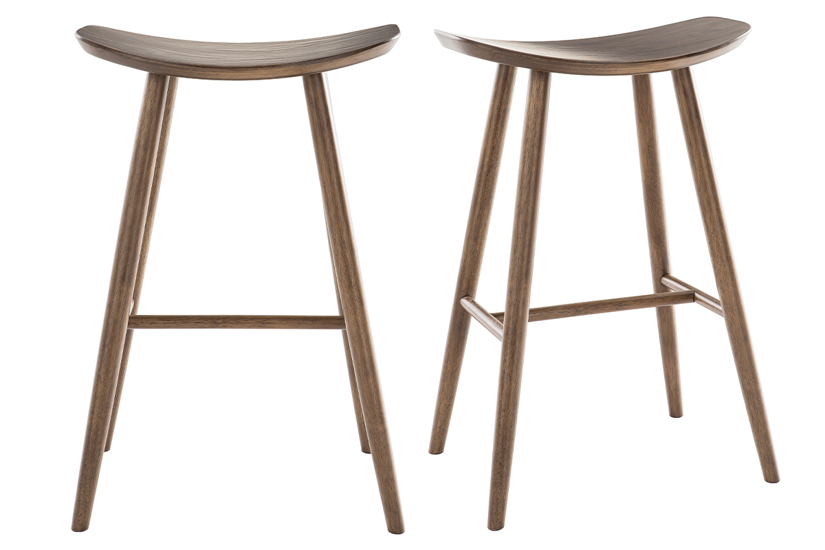 Des tabourets de bar sans dossier, pratiques et fonctionnels ! Des matériaux robustes et faciles d'entretien : les 4 pieds tubulaires en hévéa massif teinté noyer - renforcés par un repose-pied - accueillent une large assise en bois cintré en panneaux de fibres de bois placage noyer. Légers et peu encombrants, modulez votre plan de table en fonction de vos besoins en un tour de main ! Avec leur hauteur d'assise fixe (H72 cm), glissez facilement les tabourets DEMORY sous votre îlot ou table de bar.