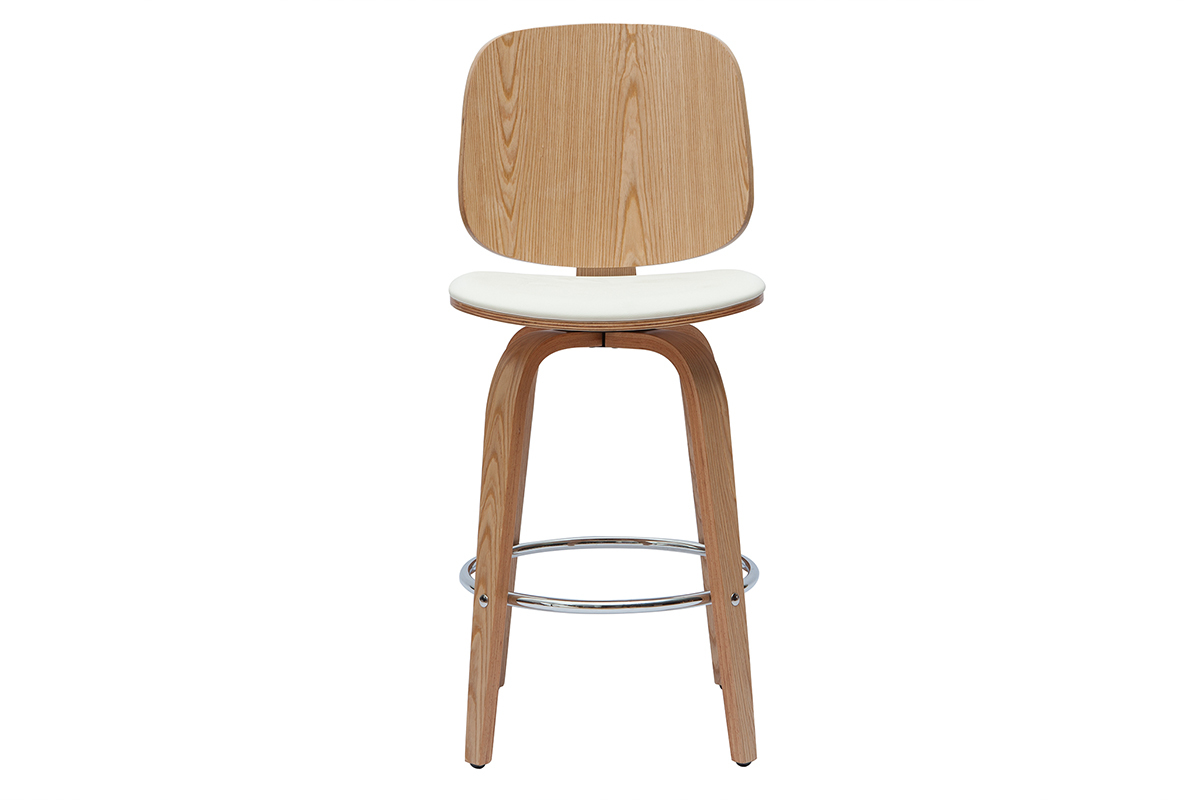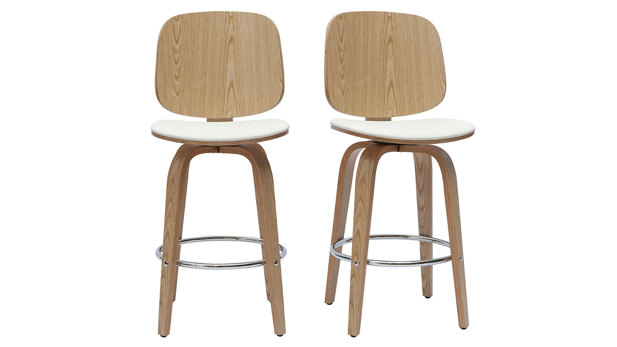 Ces chaises hautes pivotantes à 360° aux belles lignes arrondies, mixent harmonieusement matières et couleurs pour un look totalement dans l'air du temps. Elles marient à la perfection un dossier plaqué érable et des pieds en hêtre massif à une assise en polyuréthane blanc. Amis et famille seront conquis par ces tabourets aussi design que chaleureux.