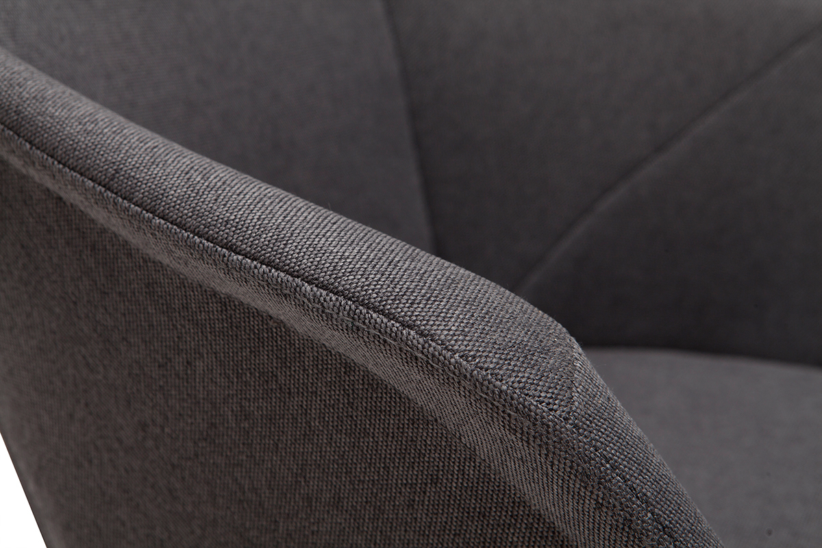 Ces tabourets de bar offrent tout le confort d'une assise généreuse, rembourrée et entièrement habillée d'un magnifique tissu gris foncé. Ce revêtement (100% polyester) est à la fois doux au toucher et très résistant. Tout a été pensé afin d'apporter un excellent confort : le dossier est haut (H39 cm), les accoudoirs sont larges et le repose-pied est intégré.