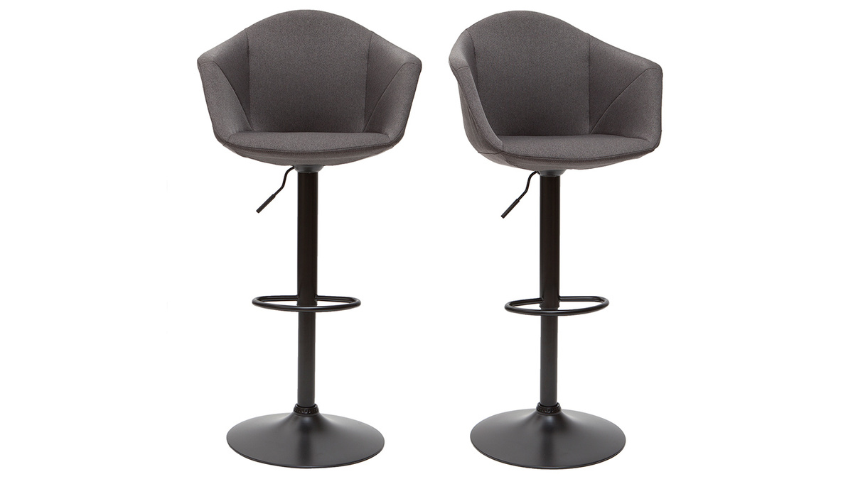 Tabourets de bar réglables pivotants 360° en tissu gris foncé et métal (lot de 2) TAYA (Ce produit n'est plus commercialisé)