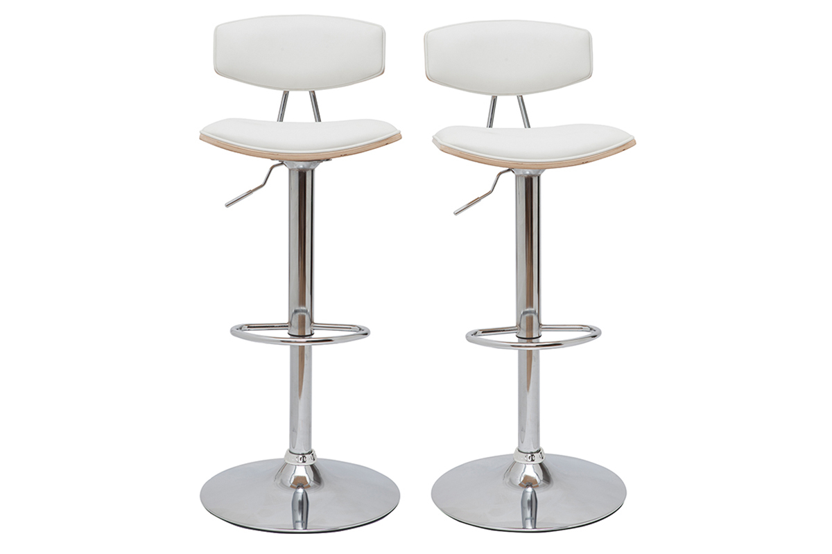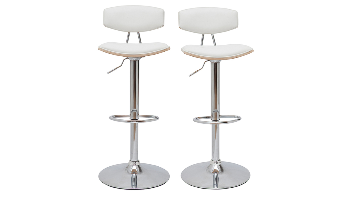 Avec une silhouette travaillée tout en légèreté, le modèle VASCO donne le ton d'une assise purement design. Ces tabourets de bar réglables associent leurs belles lignes fluides à un mélange de matières chics et tendance. Polyuréthane blanc, acier chromé et bois clair forment le mix parfait !