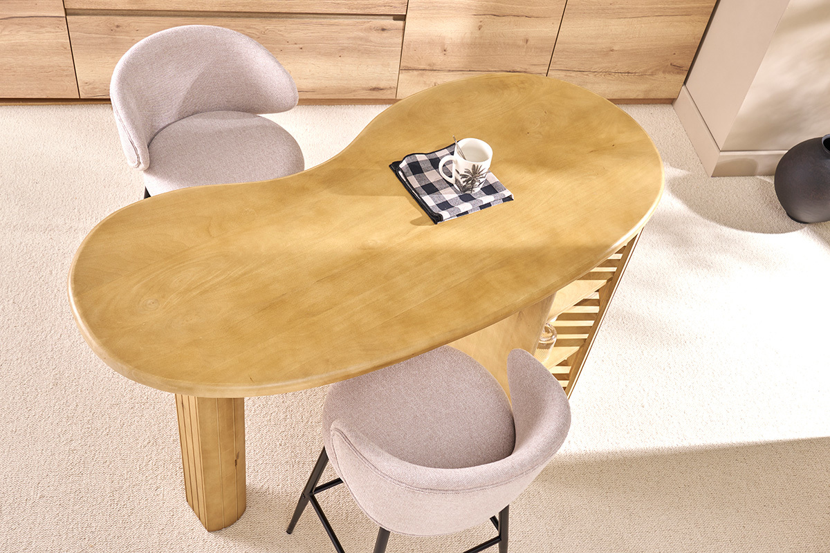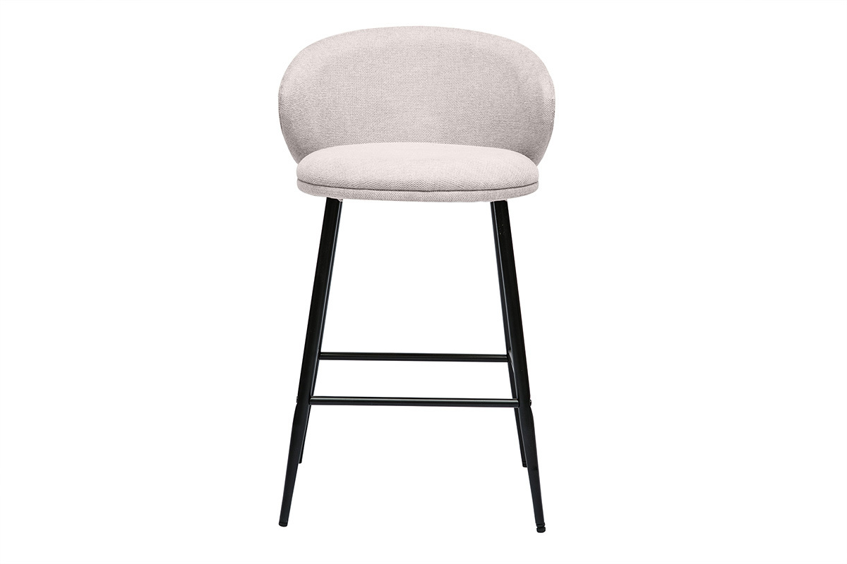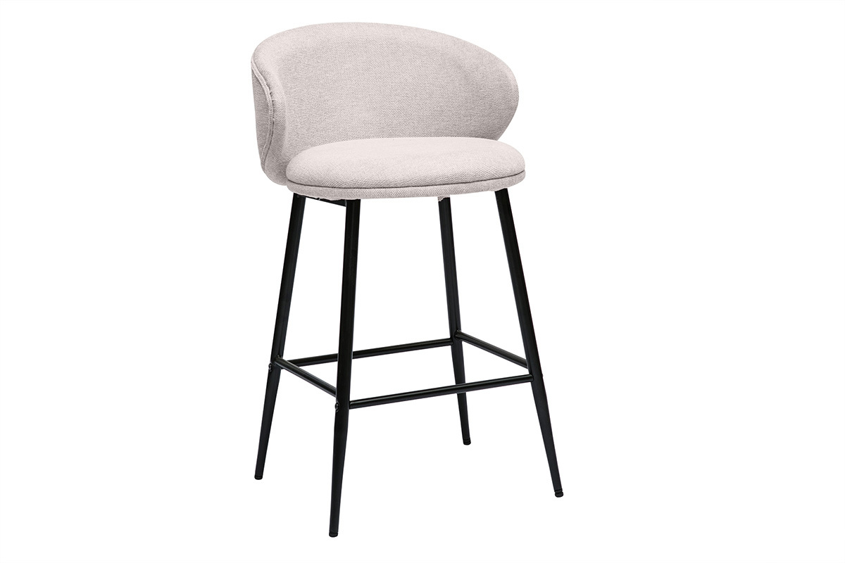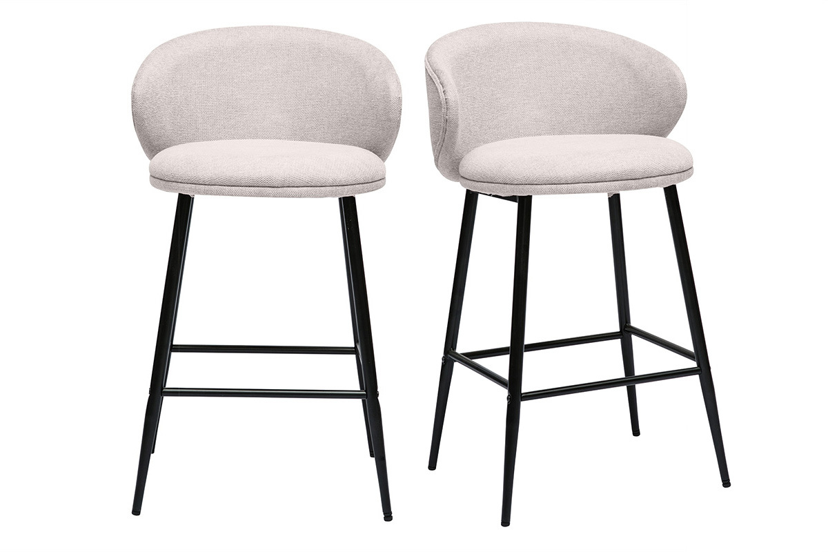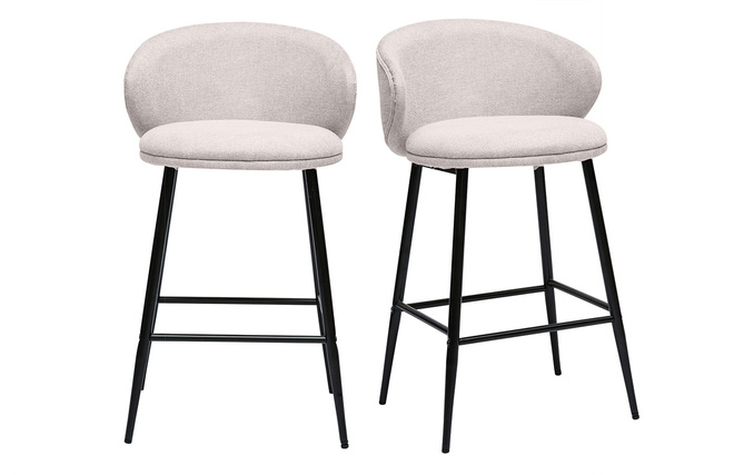 Les tabourets de bar design sont recouverts d'un tissu effet velours texturé beige (95% polyester, 5% nylon) doux au toucher. L'élégant passepoil qui dessine les contours du dossier parfait l'ensemble.