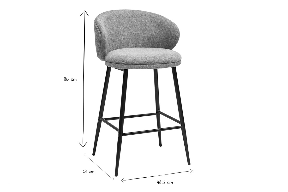 Les tabourets de bar ROSALIE se caractérisent par leur design tout en courbes et leurs finitions soignées. Ces tabourets hauts combine élégamment une assise enveloppante en tissu effet velours texturé à un piètement métallique travaillé tout en légèreté. Les volumes s'équilibrent parfaitement et les éléments sont liés d'une manière fluide et délicate.