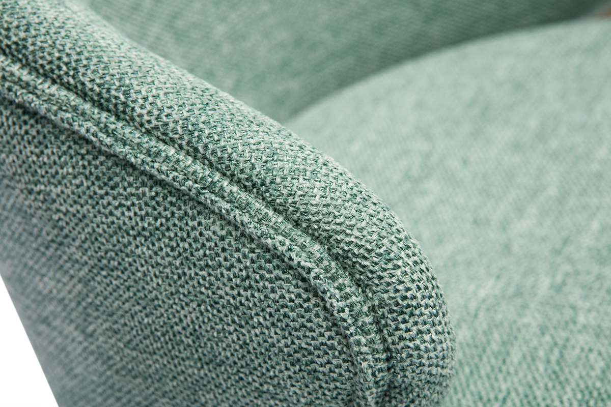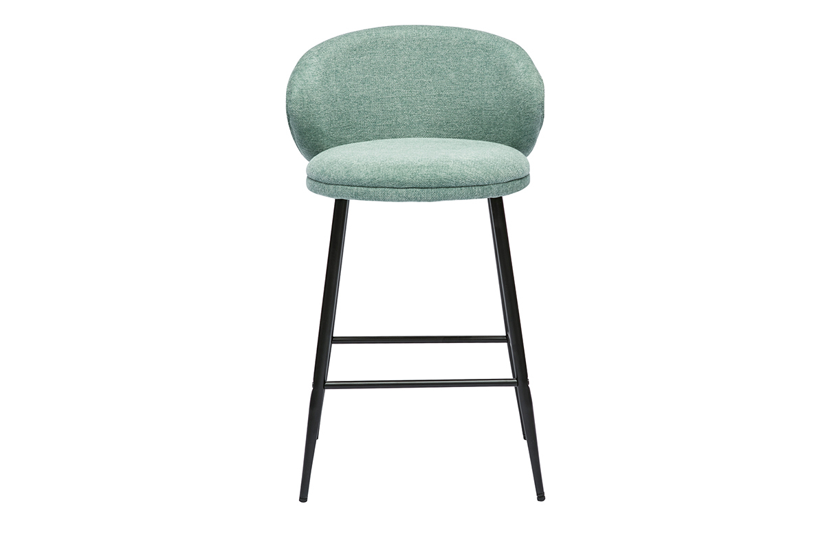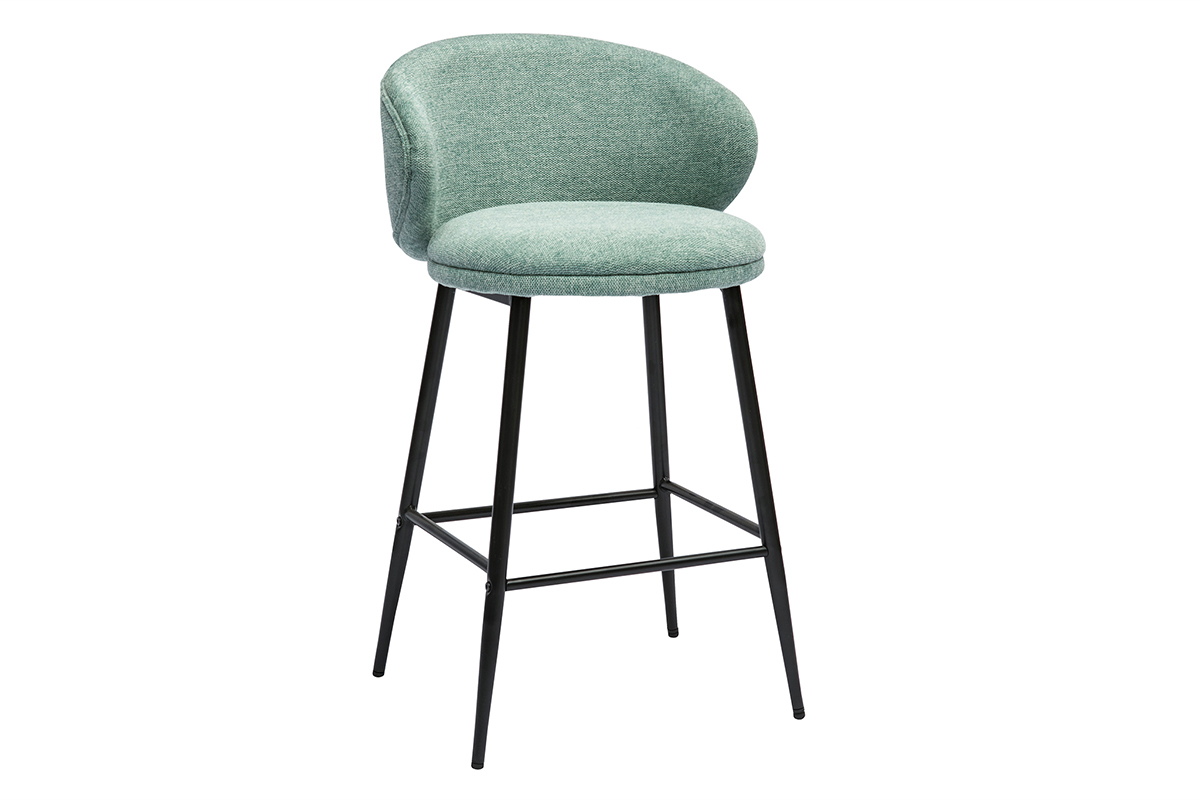 Les tabourets de bar design sont recouverts d'un tissu effet velours texturé céladon (95% polyester, 5% nylon) doux au toucher. L'élégant passepoil qui dessine les contours du dossier parfait l'ensemble.