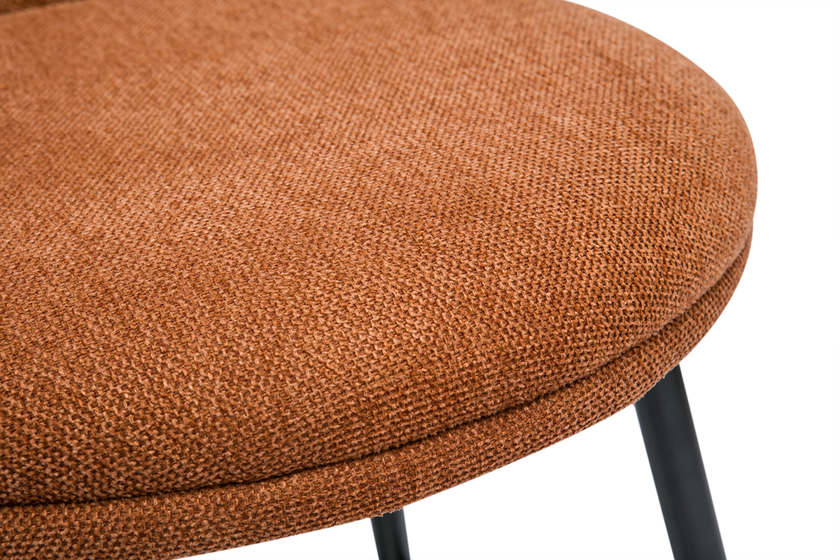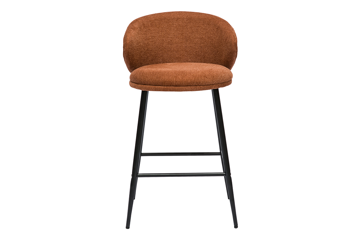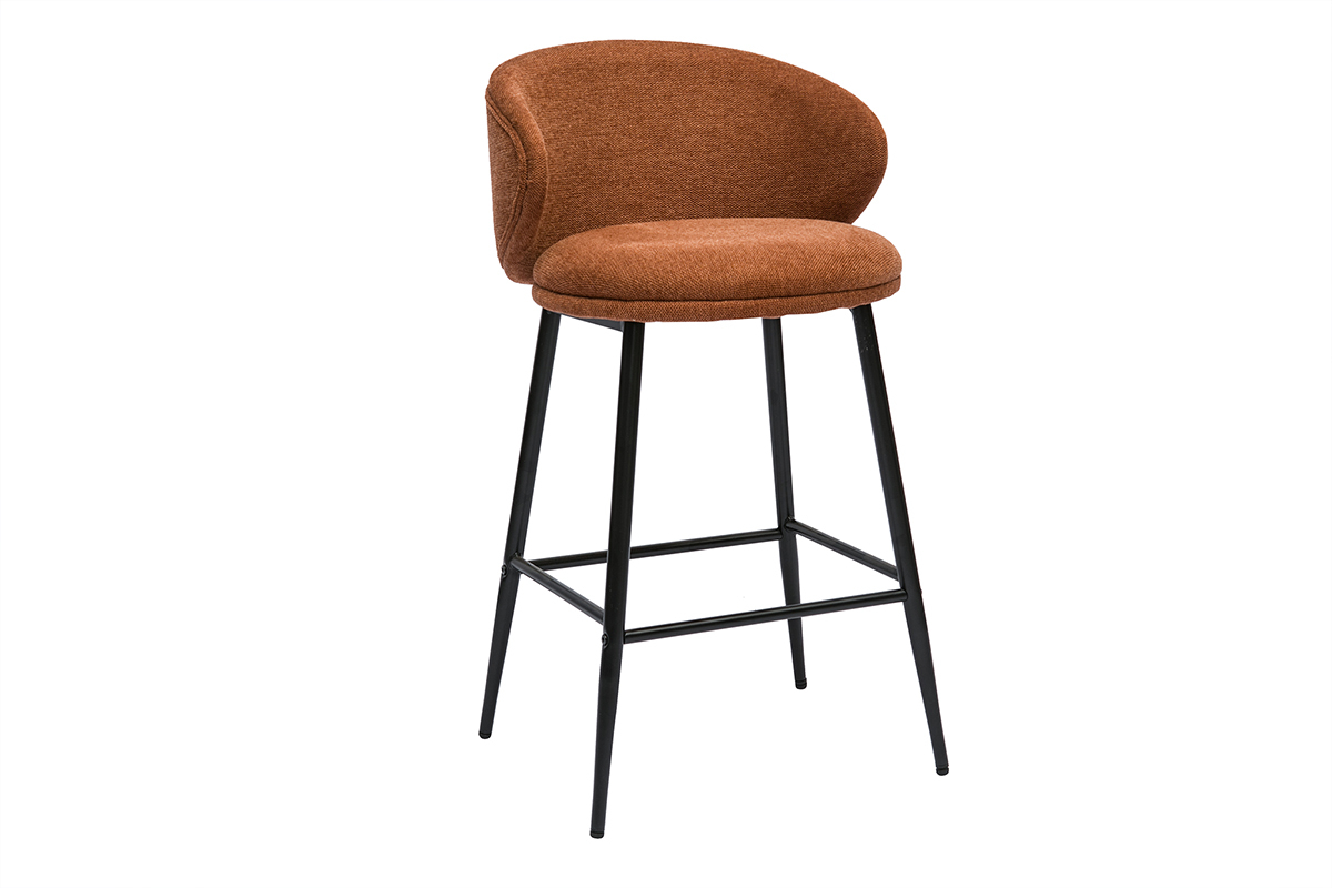 Les tabourets de bar design sont recouverts d'un tissu effet velours texturé terre brûlée (95% polyester, 5% nylon) doux au toucher. L'élégant passepoil qui dessine les contours du dossier parfait l'ensemble.