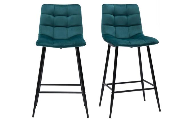 Du café pris sur le pouce au dîner entre amis, en passant par le brunch dominical, les tabourets de bar MAXWELL se montrent à la hauteur de toutes les situations ! Perchés sur des pieds fuselés en métal noir, ces tabourets de bar à la silhouette élancée ne manquent pas d'allure. Leur ligne indémodable, leur élégant capitonnage et leur velours soyeux bleu pétrole (100% polyester) donnent le ton du raffinement ultime.