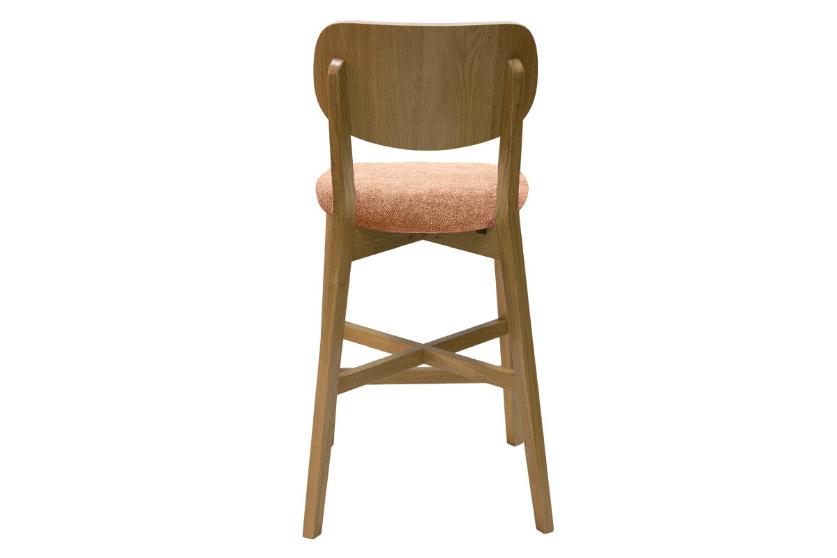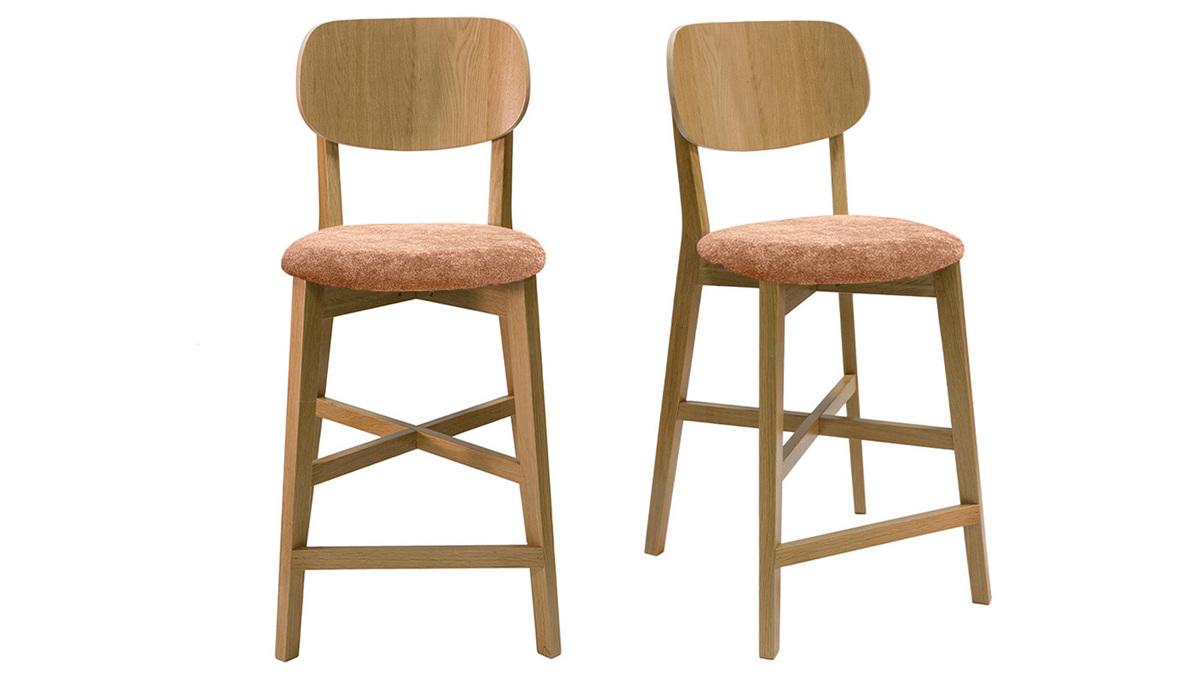 Tabourets de bar en bois clair chêne et tissu effet velours terre brûlée H65 cm LUCIA fabriqués en Europe.