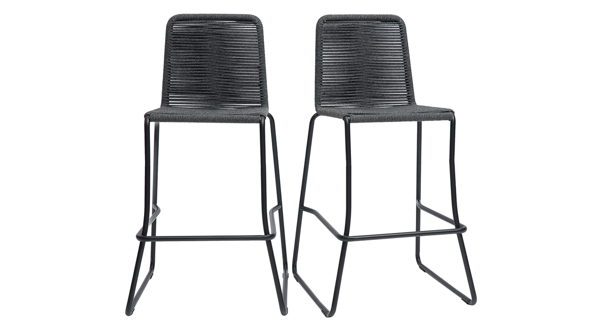 Avec leur design unique, ils offriront une ambiance moderne à votre terrasse. Leur cordage en fait des assises originales au style léger et aérien. Il est complété par un piètement en métal qui assure la solidité de l'ensemble. Ce mélange de matériaux fait tout le charme des tabourets de bar YORGO.