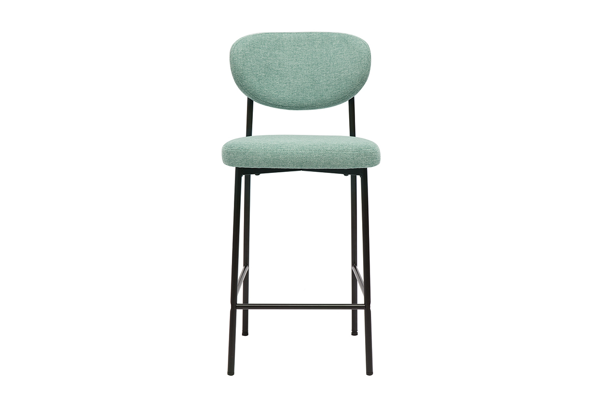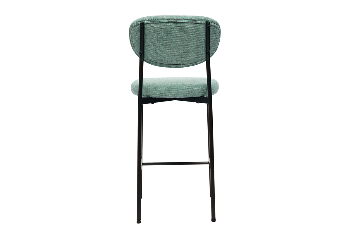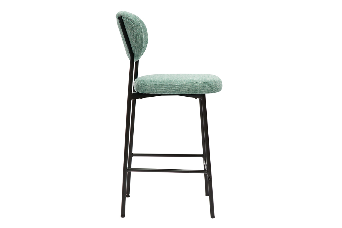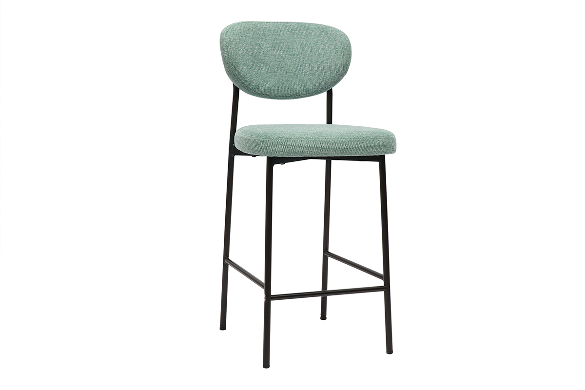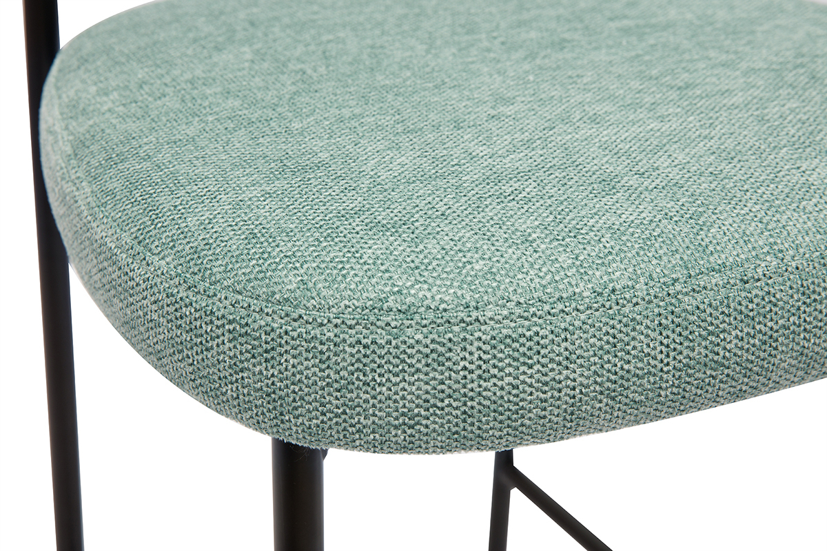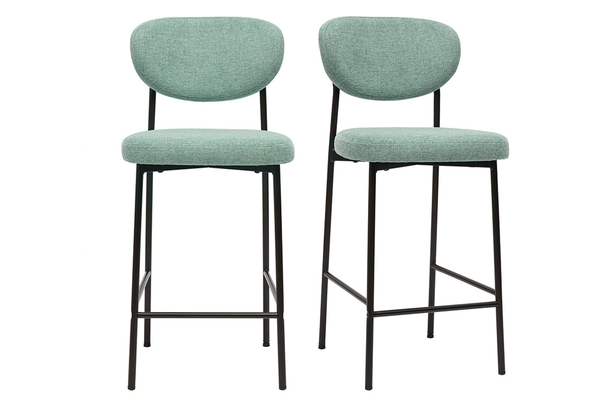 Tabourets de bar en tissu effet velours texturé céladon et métal noir H65 cm BREKA vendus par lot de 2. Livrés prêts à assembler.