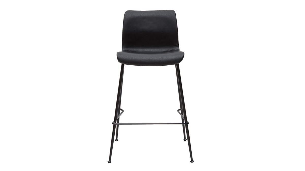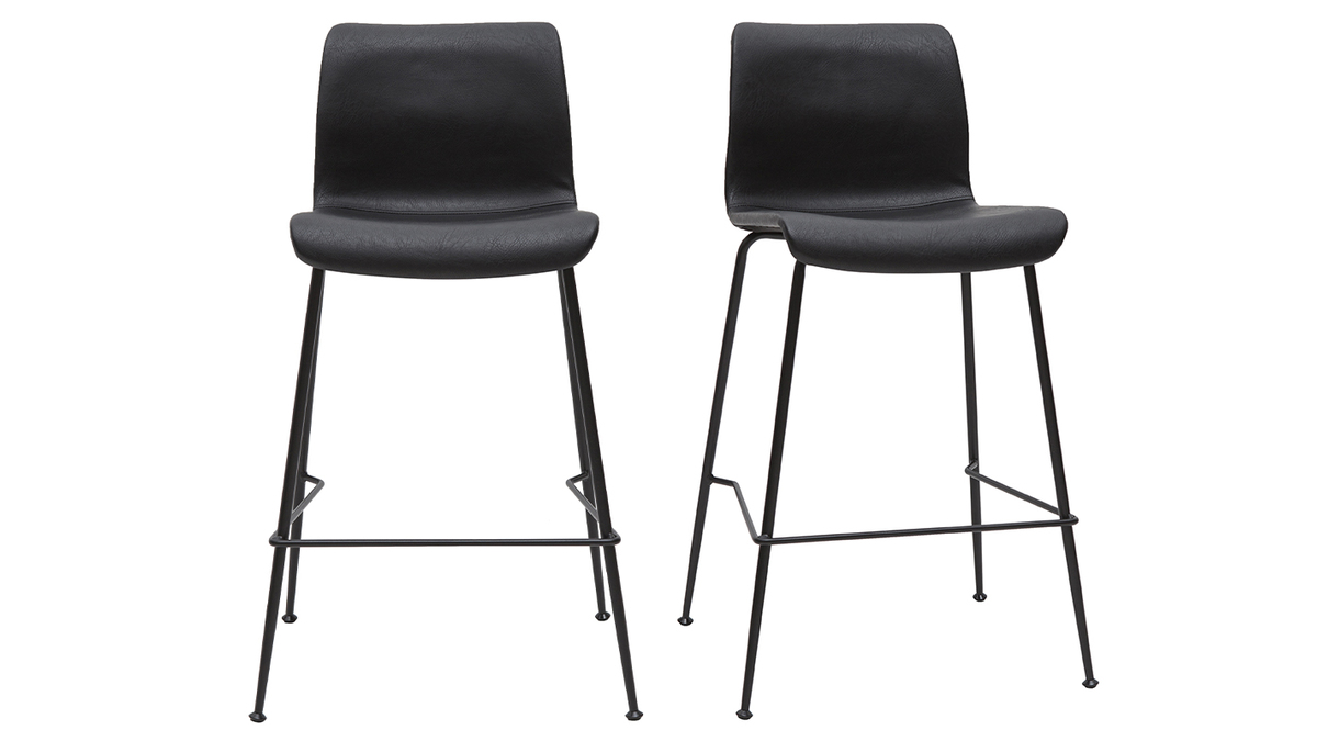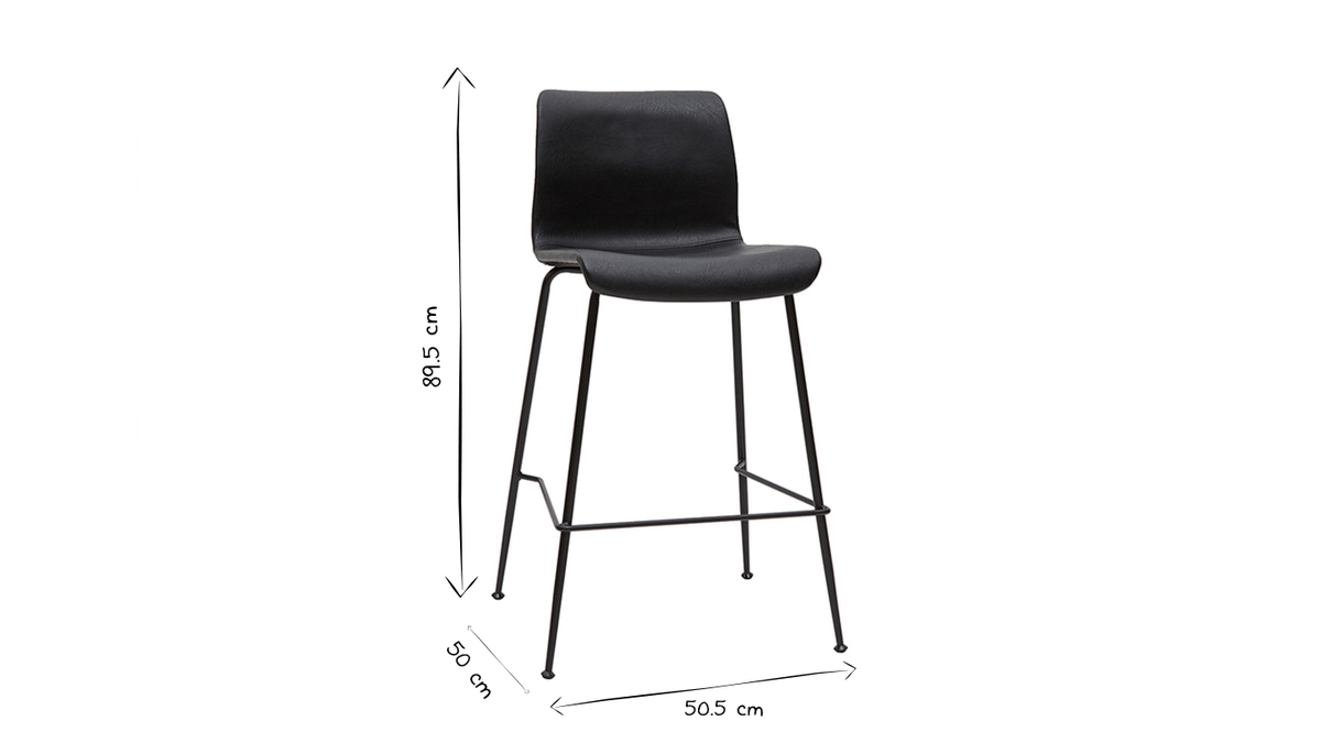 À la fois minimaliste et graphique, le piètement en métal noir, tout en finesse, confère une silhouette aérienne au siège qui s'habille d'un superbe noir nuancé à l'aspect vieilli. Une finition empreinte de caractère qui ne manquera pas d'apporter une note chaleureuse et authentique autour de votre table haute ou îlot. Parfaits pour recevoir avec style et véritables « must-have » dans une cuisine ou une salle à manger à la déco industrielle, on imagine également les tabourets HAROLD à l'inspiration rétro prendre leur place dans une ambiance dandy chic ou club anglais !