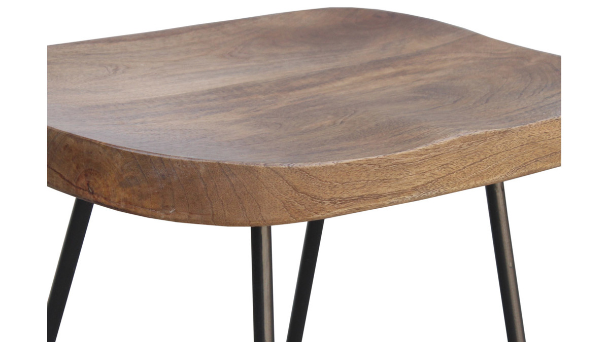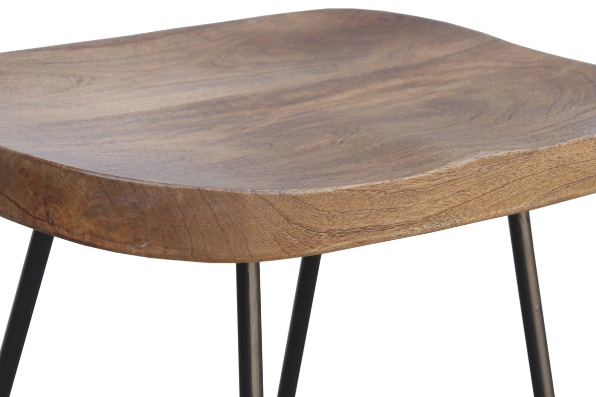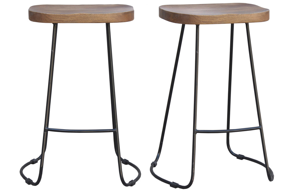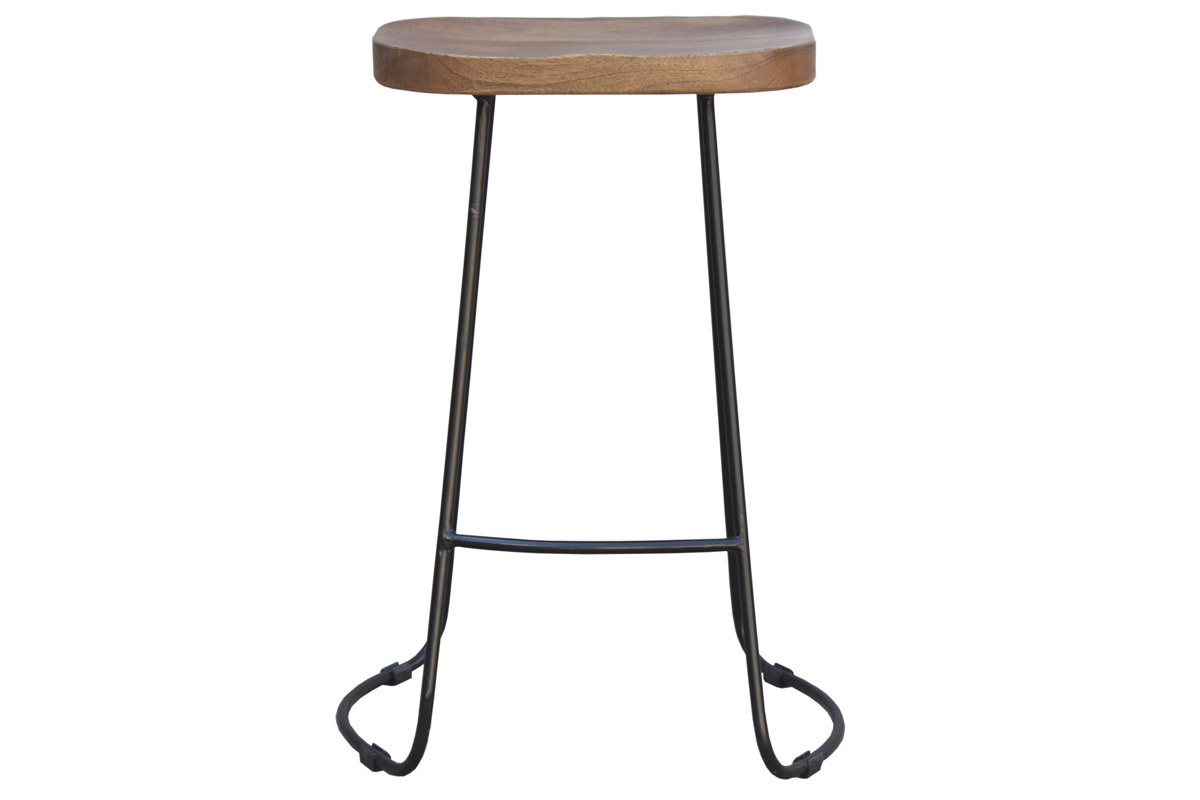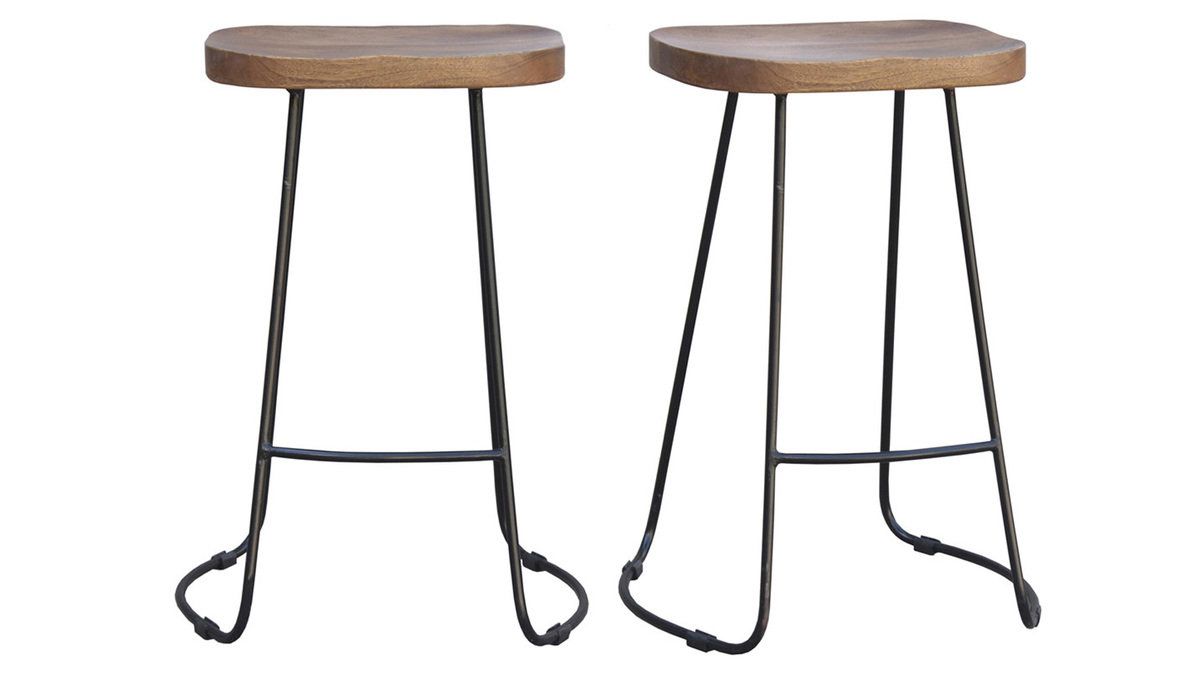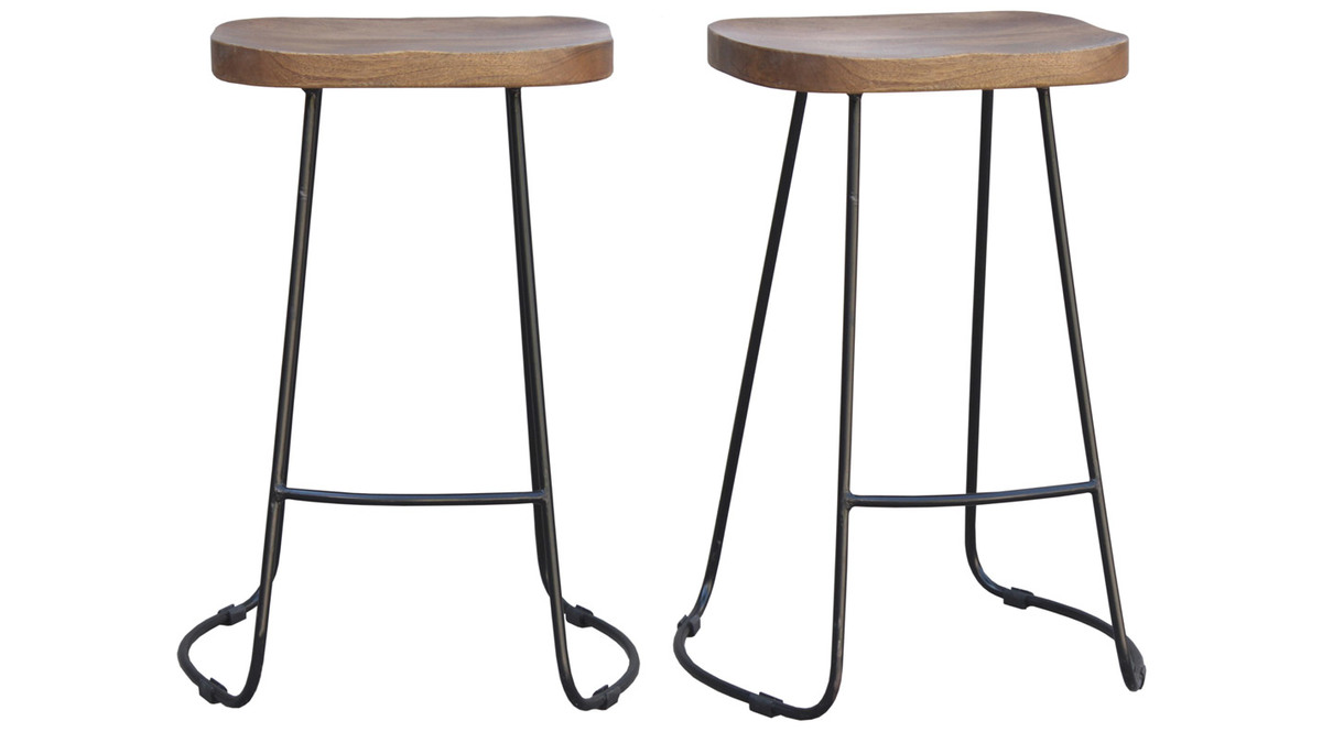 Composés d'une assise en bois massif et d'un piètement fin et évasé en métal, les tabourets hauts RUNKO sont conçus selon des techniques artisanales qui offrent un rendu unique. Les nuances du manguier sont douces et lumineuses et contrastent élégamment avec la couleur noire. Avec leur hauteur d'assise de 65 cm, ils trouveront leur place autour d'un comptoir, d'une table haute ou d'un ilôt de cuisine mesurant au moins 90 cm.