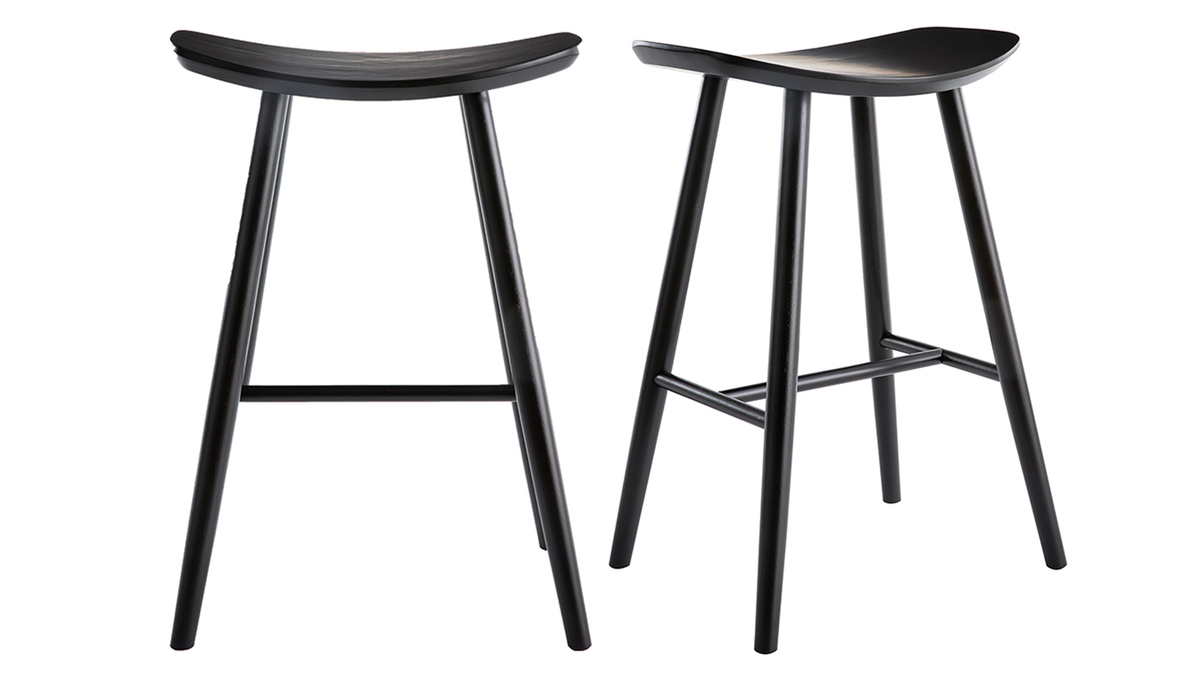 Composés de contreplaqué et d'hévéa massif, ces tabourets noirs apporteront une esprit vintage à votre intérieur. Leur design tout en rondeur offre un rendu unique et délicat, mettant parfaitement en valeur leur couleur sobre.