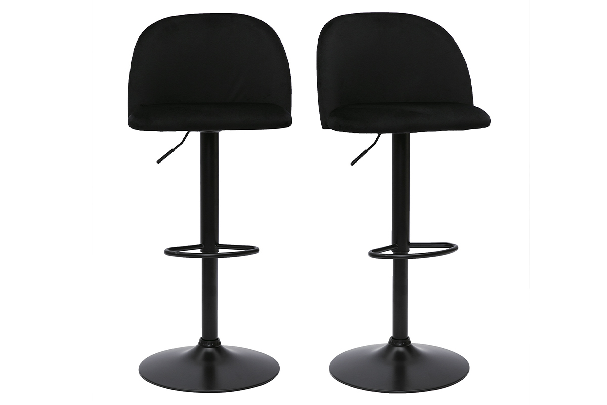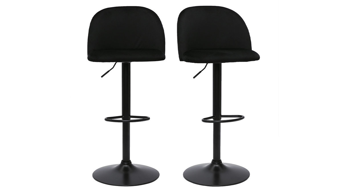 Combinant à la perfection inspiration Art Déco et lignes contemporaines, le piètement en métal noir modernise les courbes au charme vintage du siège. Avec son délicat revêtement en tissu velours noir très agréable au toucher, ces chaises de bar ajouteront sans conteste une note chaleureuse à votre pièce de vie. Signature d'un îlot chic et cosy, on imagine parfaitement ces tabourets de bar dans une salle à manger ou une cuisine à la déco rétro chic.