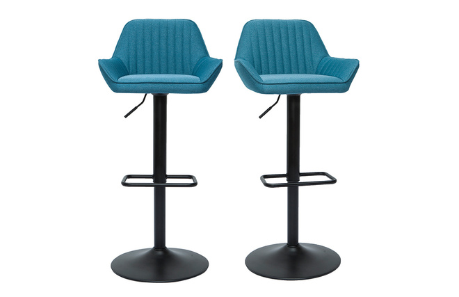 Ces tabourets de bar design en tissu bleu et métal noir garantissent un véritable confort d'assise au quotidien. Dossier enveloppant (L45 x H28.5 cm), accoudoirs évasés et siège entièrement garni d'une mousse ferme (densité de l'assise 30 kg/m³), ce modèle de tabourets hauts invitent à la convivialité et au partage d'agréables moments bien attablé !