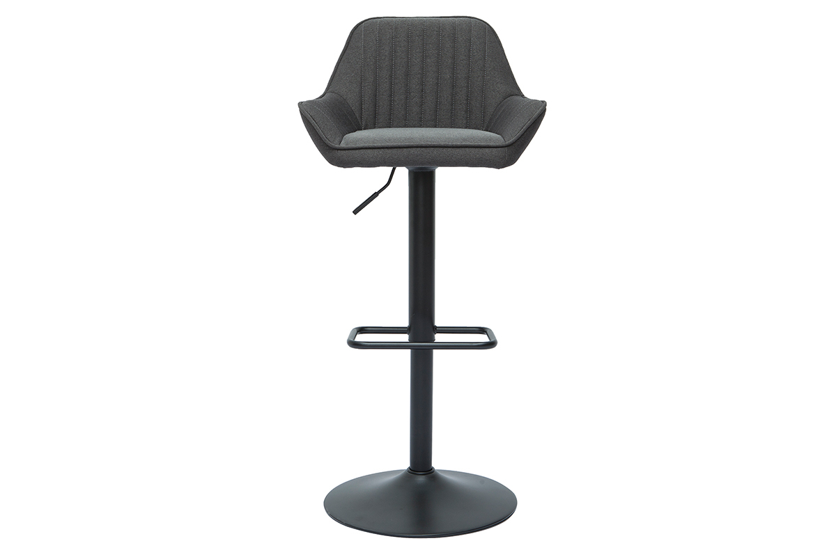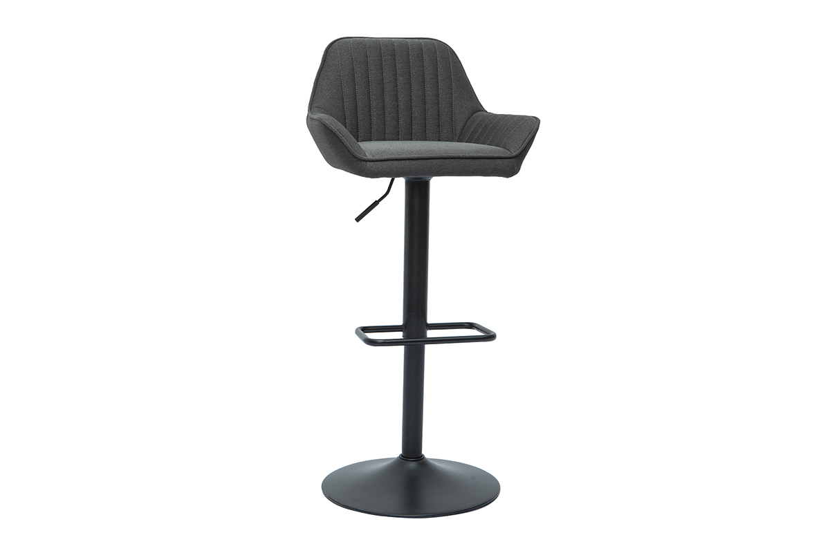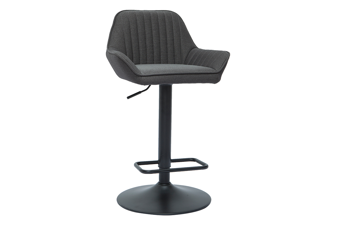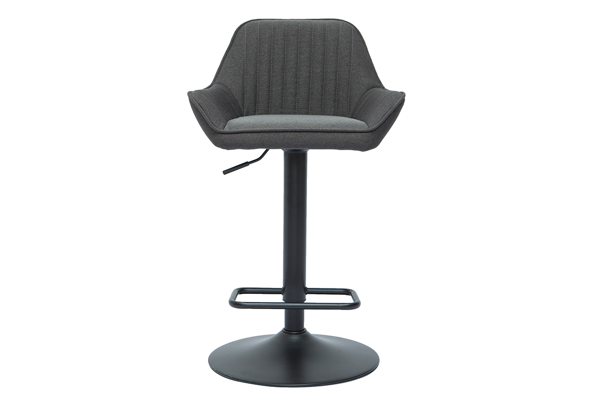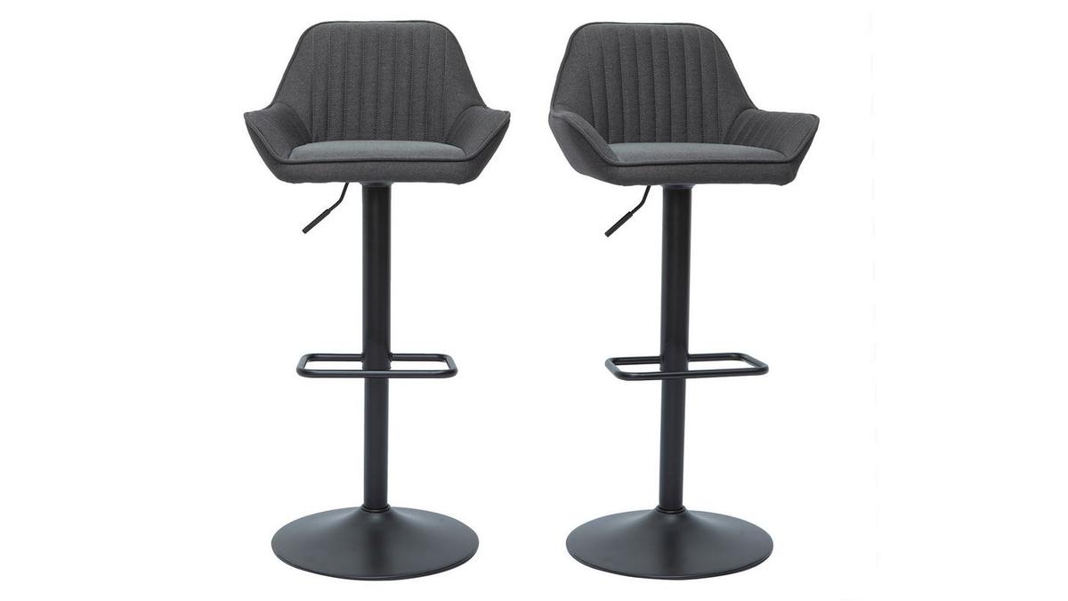 Ces tabourets de bar design en tissu gris anthracite et métal noir garantissent un véritable confort d'assise au quotidien. Dossier enveloppant (L45 x H28.5 cm), accoudoirs évasés et siège entièrement garni d'une mousse ferme (densité de l'assise 30 kg/m³), ce modèle de tabourets hauts invitent à la convivialité et au partage d'agréables moments bien attablé !