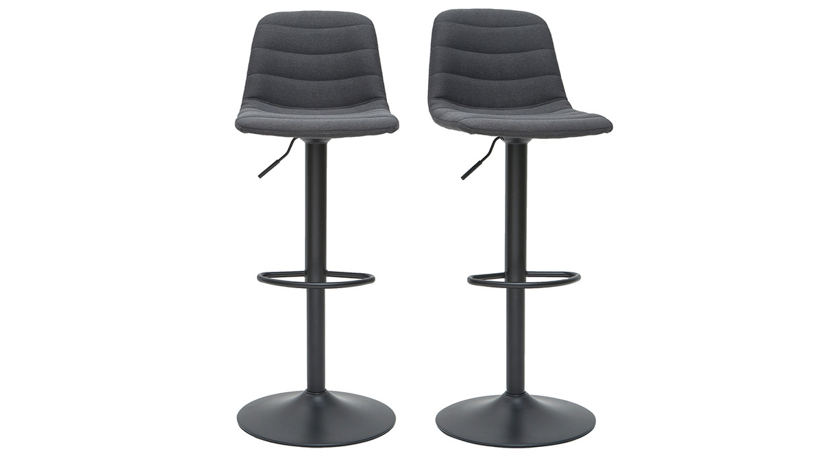 Le revêtement en polyester gris foncé pour l'assise et le métal noir mat pour le piètement apportent une touche contemporaine et épurée dans un séjour qui se veut tendance. Vendus par lot de 2, les tabourets de bar SAURY ont l'avantage de pouvoir se régler pour une hauteur d'assise de 61 à 83 cm. Pour plus de confort, l'assise pivote à 360°.