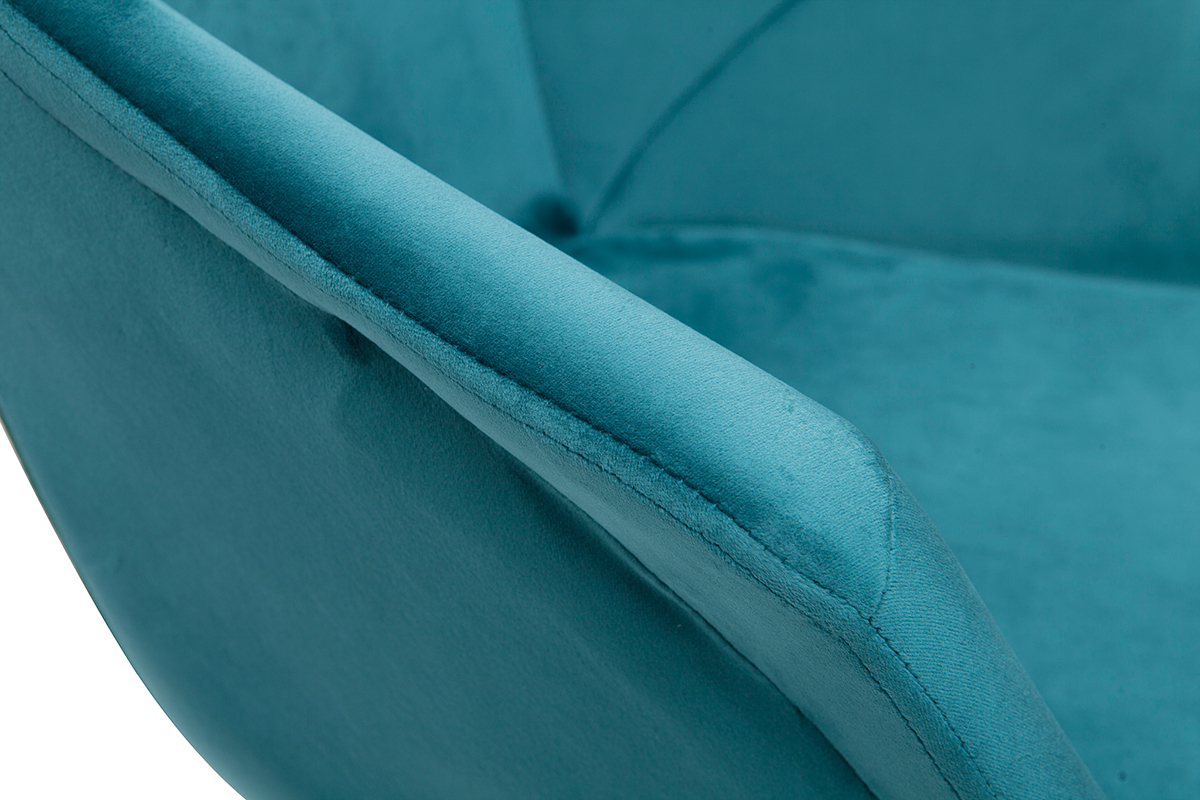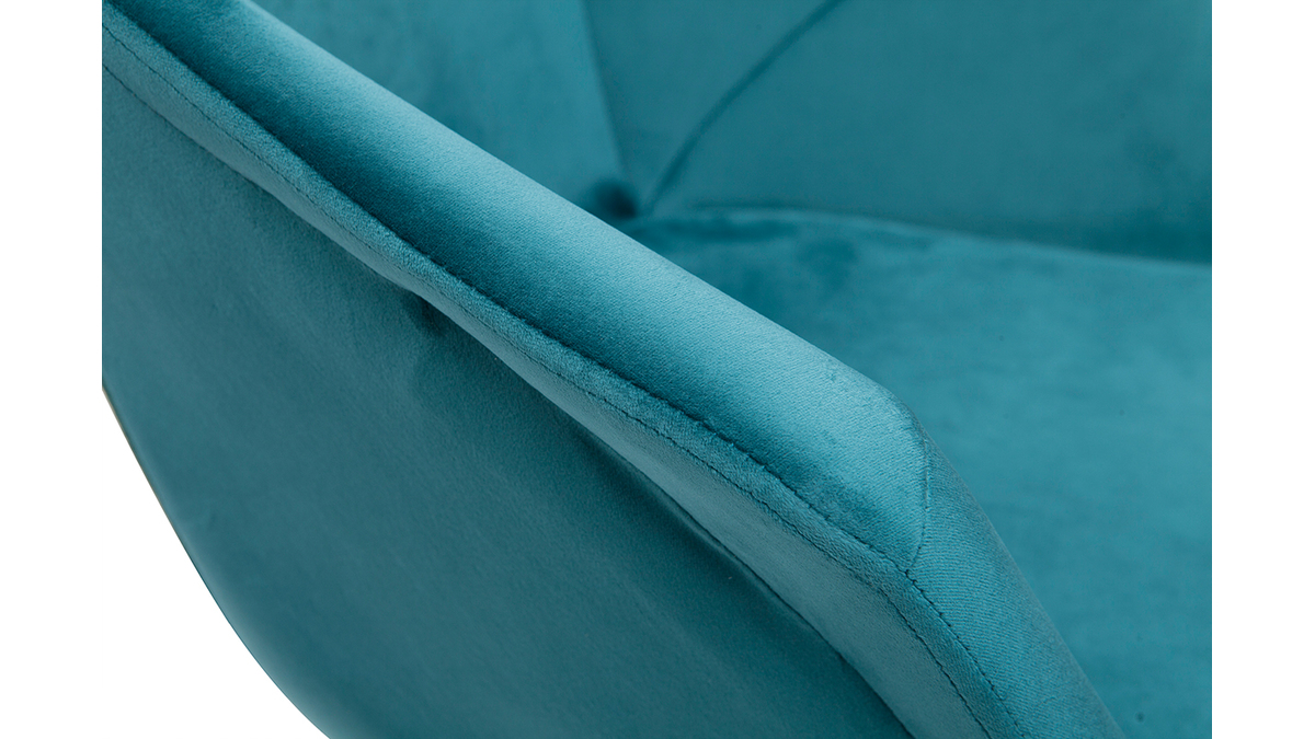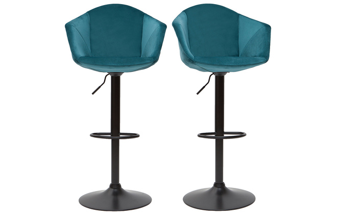 Ces tabourets de bar offrent tout le confort d'une assise généreuse, rembourrée et entièrement habillée d'un magnifique tissu velours bleu pétrole dont le velouté sollicite l'oeil autant que la main. Tout a été pensé afin d'apporter un confort durable : le dossier est haut (H39 cm), les accoudoirs sont larges et le repose-pied est intégré.