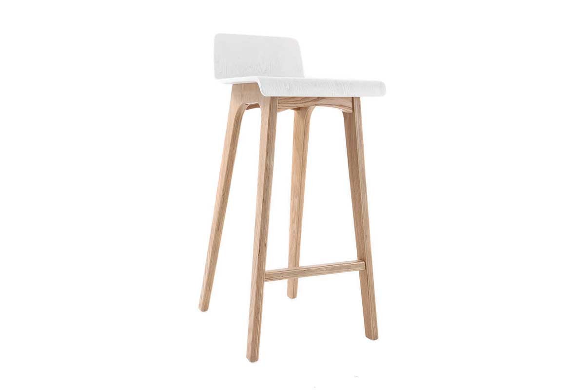 Minimalistes sans pour autant négliger confort et robustesse ! Avec une hauteur d'assise de 75 cm, ces chaises de bar accompagneront avec élégance une table de bar ou un comptoir de cuisine avec une hauteur sous plateau d'un mètre environ. Le dossier et l'assise incurvée vers le bas forment une seule pièce soutenue par 4 pieds équipés d'un repose-pied justement positionné pour vous garantir une excellente posture, l'ensemble est composé d'un placage frêne résolument solide.