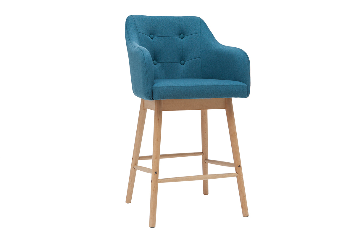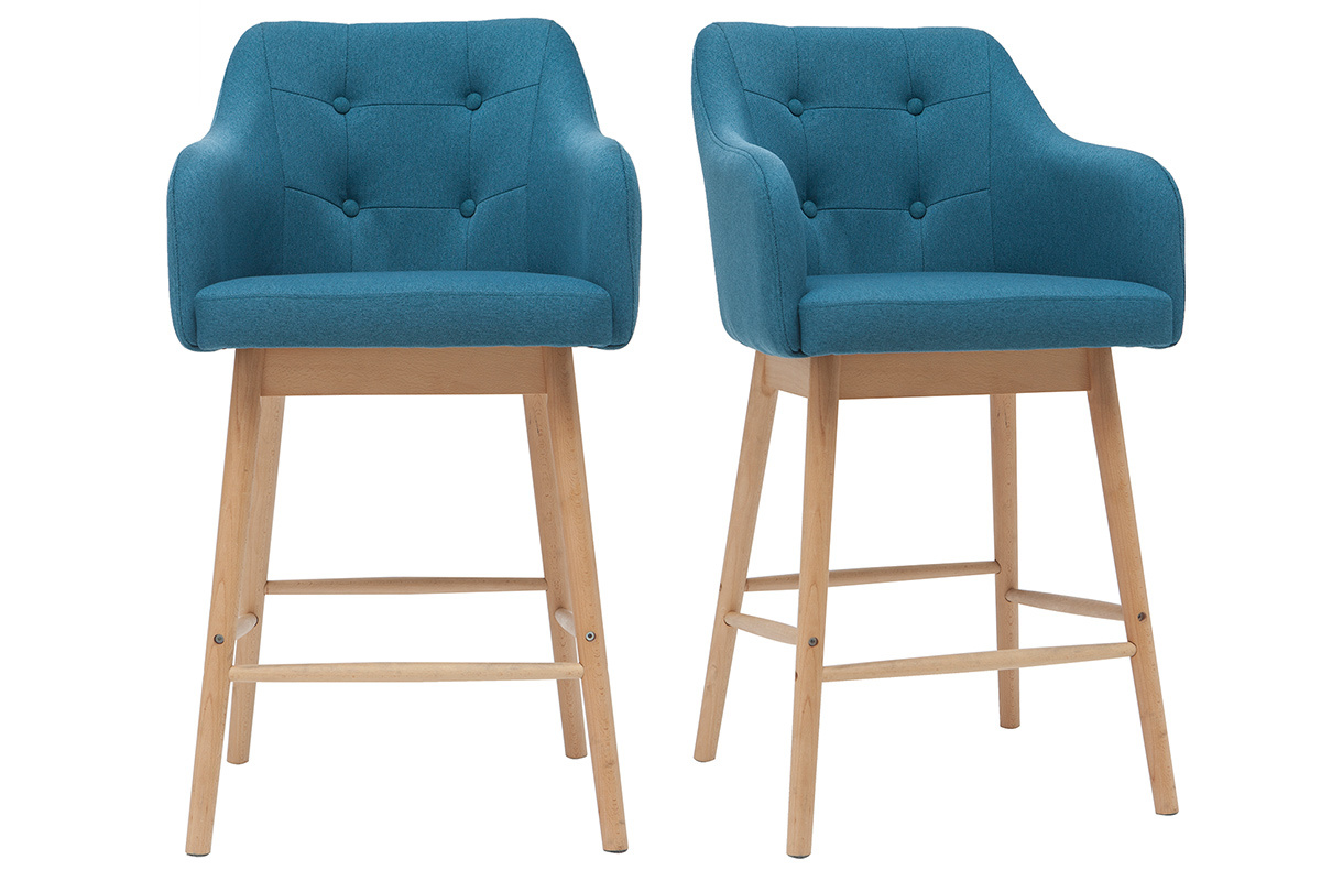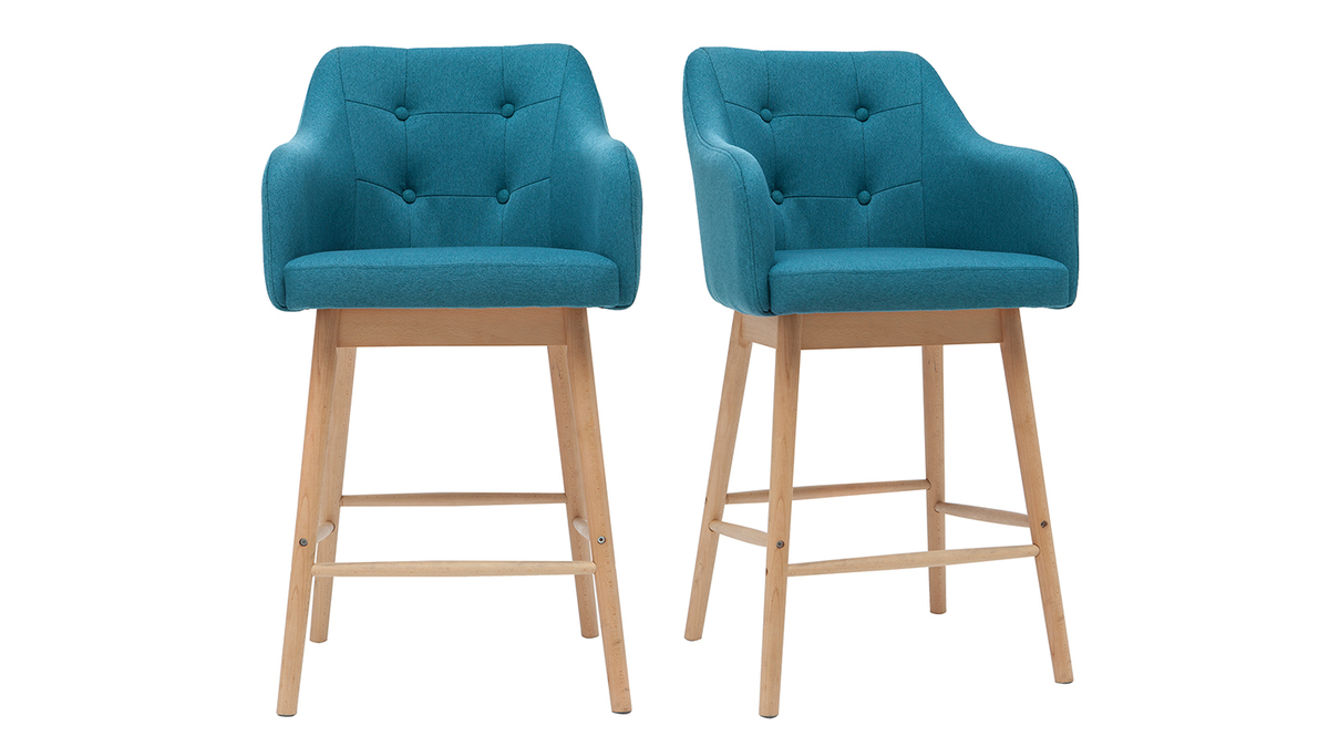 Au plaisir d'être confortablement installé s'ajoute celui d'avoir, dans son séjour ou sa cuisine, des tabourets de bar au design soigné. On apprécie particulièrement le mariage entre une assise capitonnée en tissu et un piètement en bois massif clair. Cette association, que l'on retrouve dans les pièces de mobilier scandinaves, est chaleureuse ; elle a parfaitement sa place dans un espace repas convivial.
